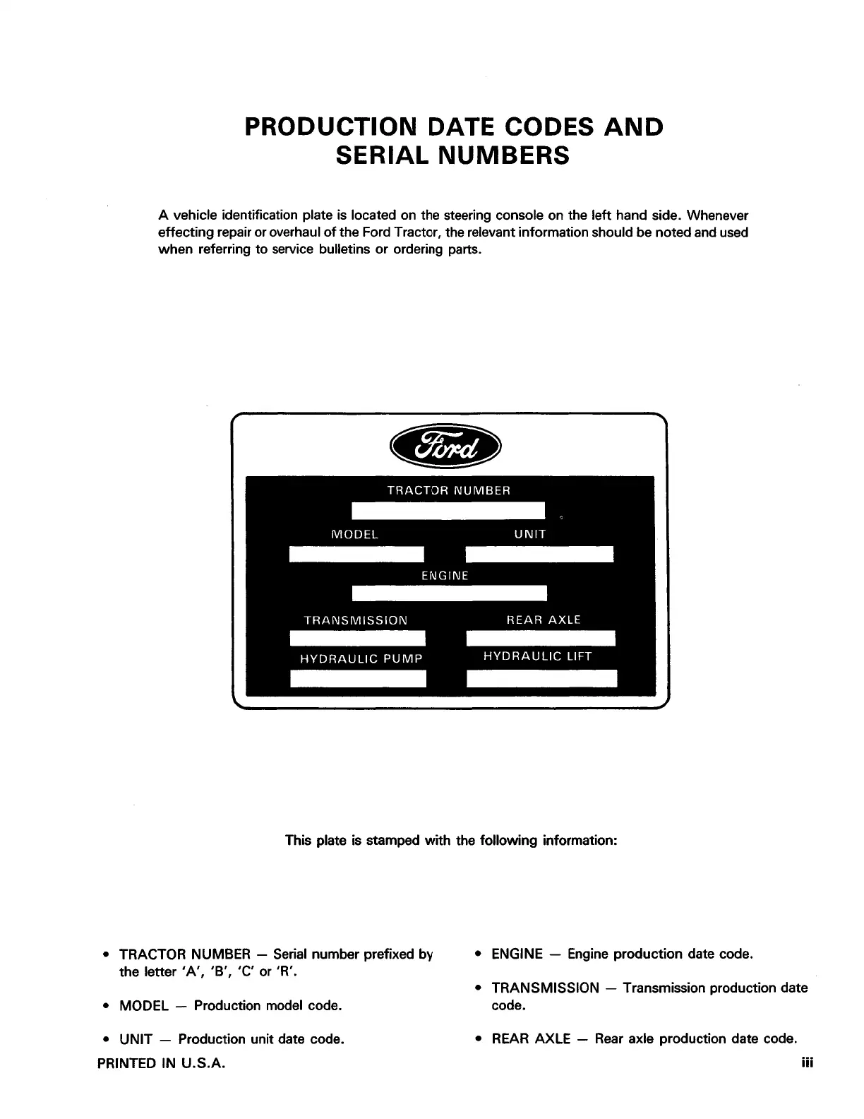 • TRACTOR NUMBER - Serial number prefixed by