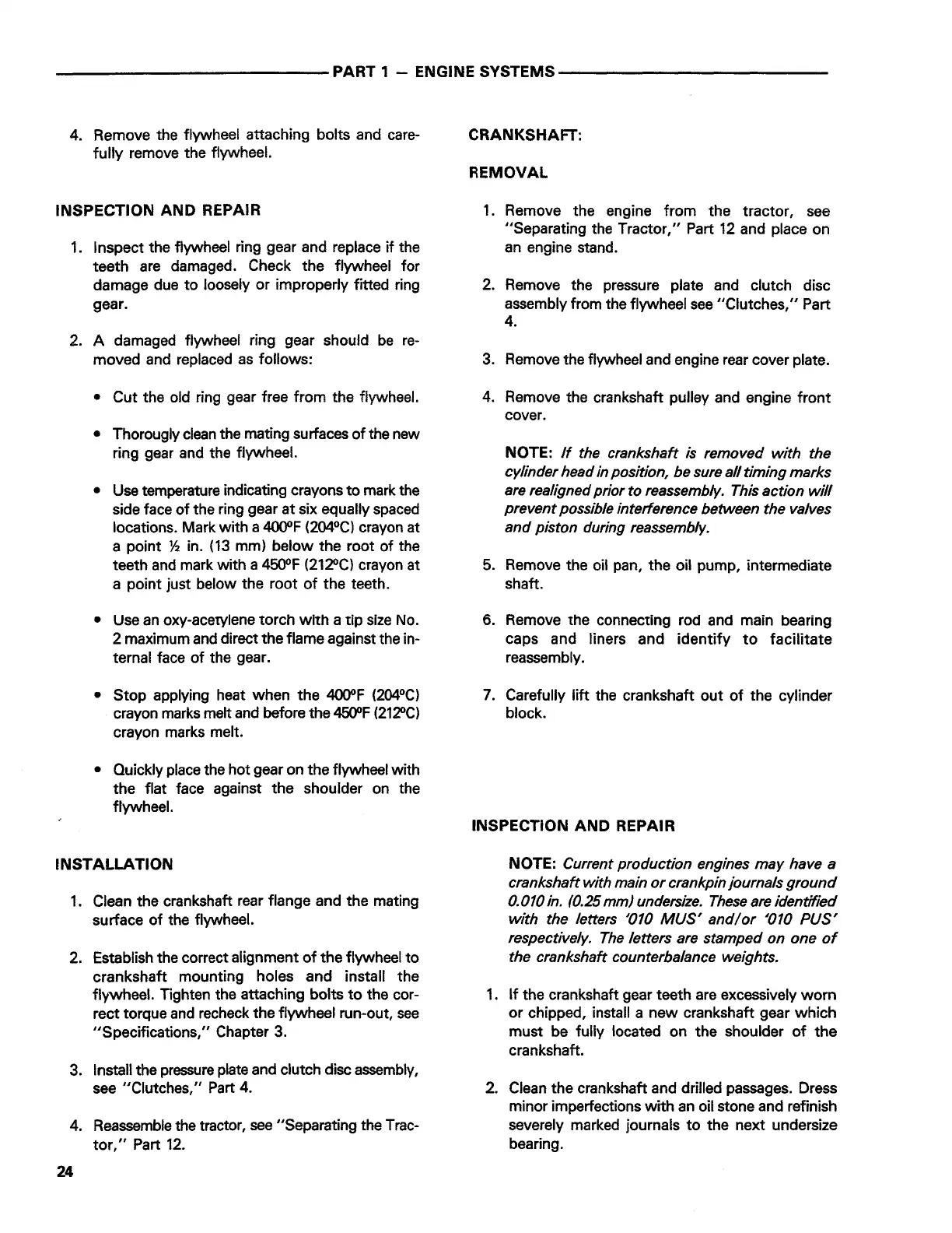 assembly from the flywheel see "Clutches," Part