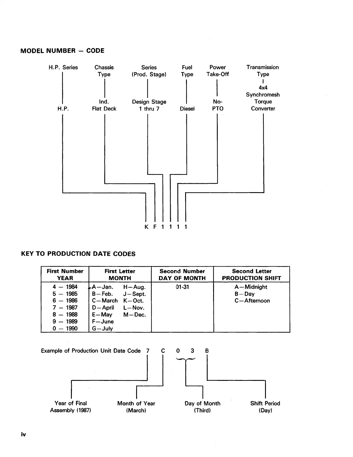 Ford 455 - MODEL NUMBER CODE; KEY TO PRODUCTION DATE CODES