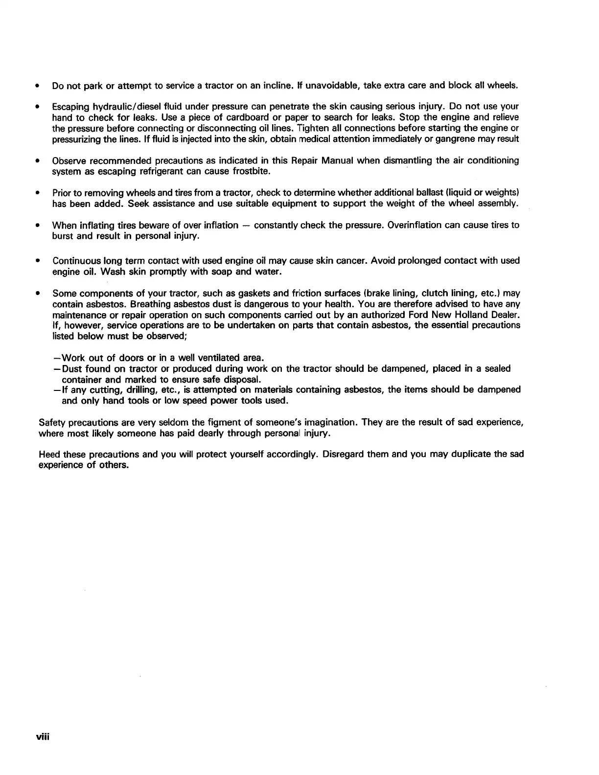 • Some components of your tractor, such as gaskets and friction surfaces (brake lining, clutch lining, etc.) may