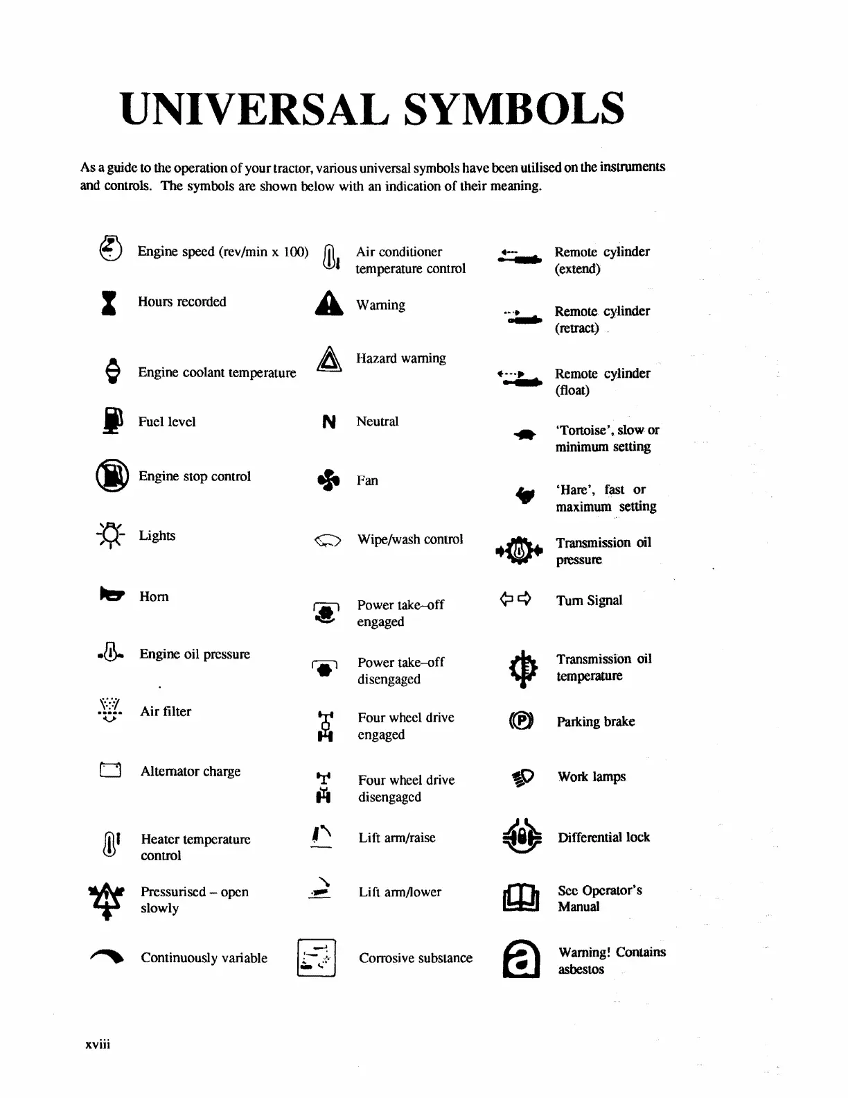operation of your tractor, various universal