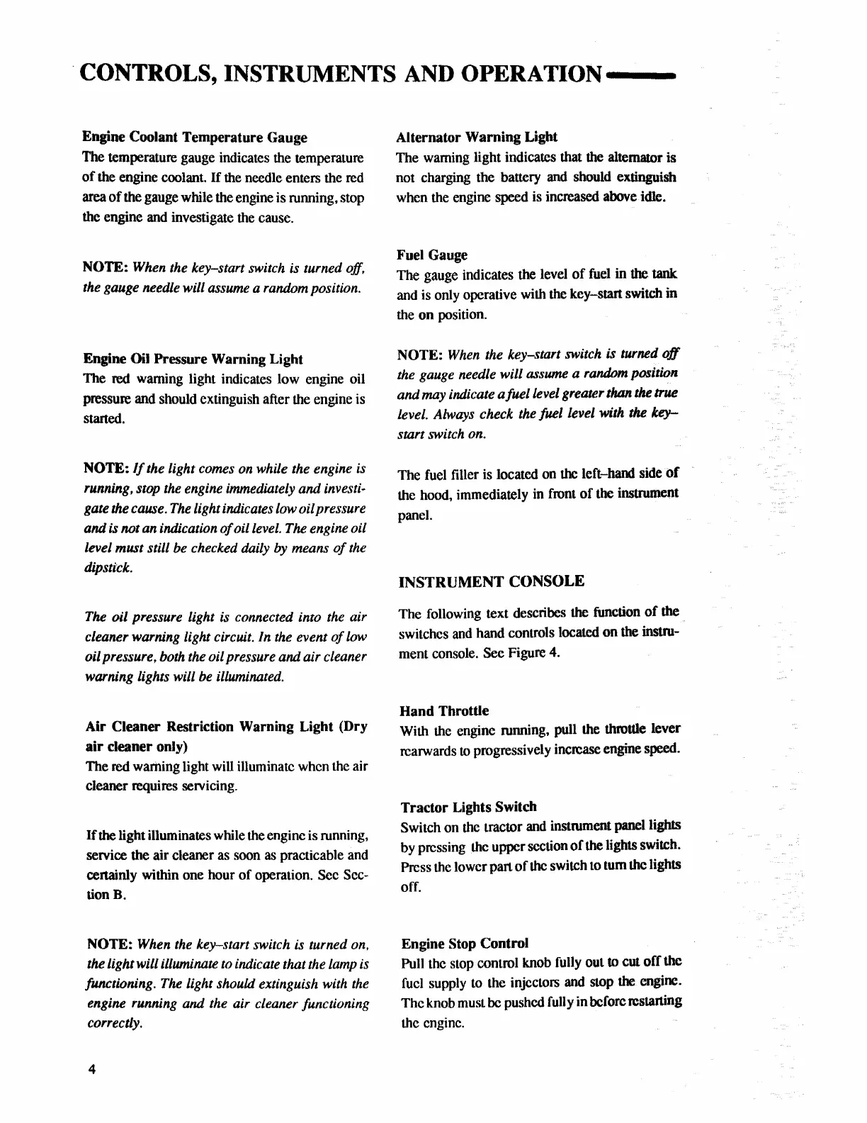 NOTE: When the key-start switch is turned