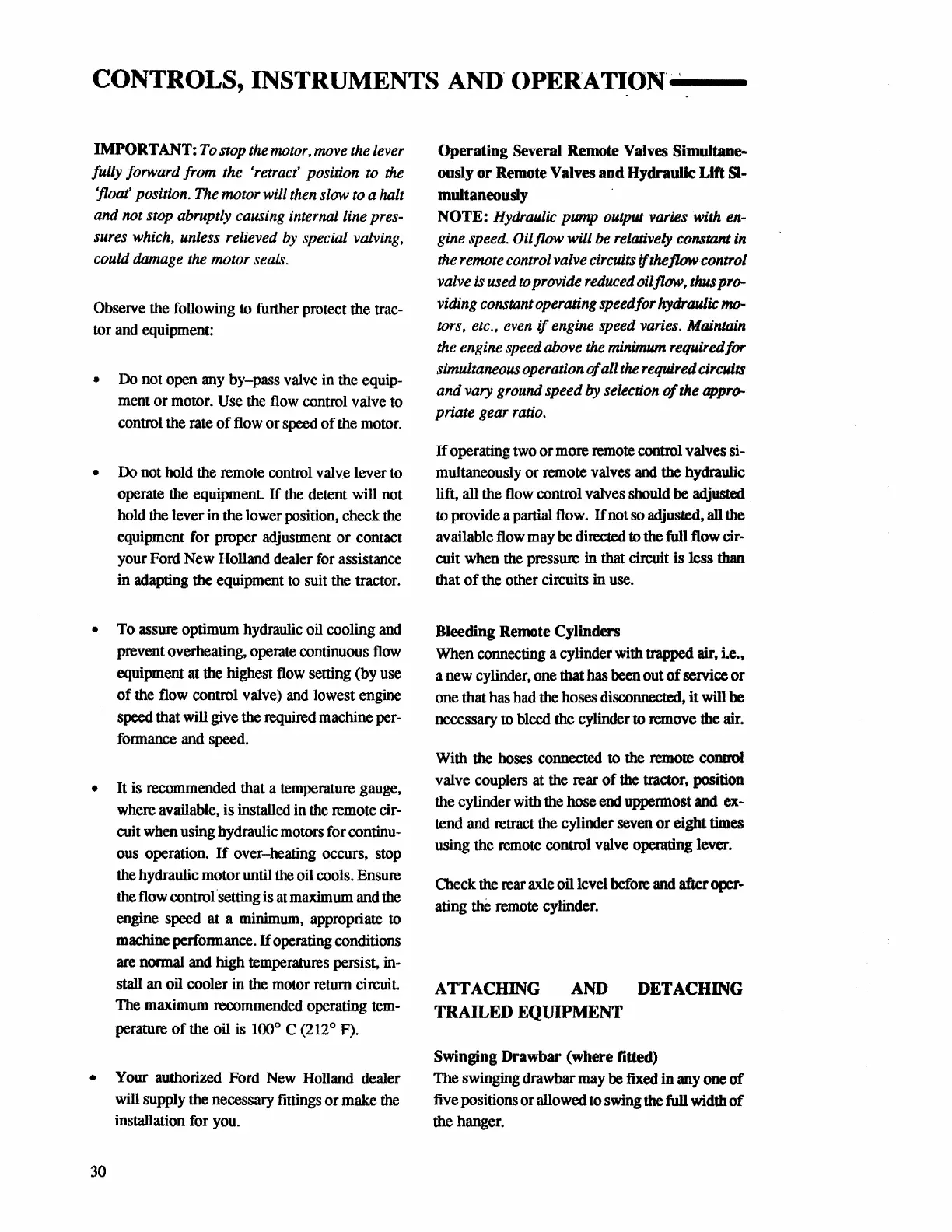 Ford 4630 - Operating Remote Hydraulic Cylinders; Double-Acting Cylinder Operation; Single-Acting Cylinder Operation