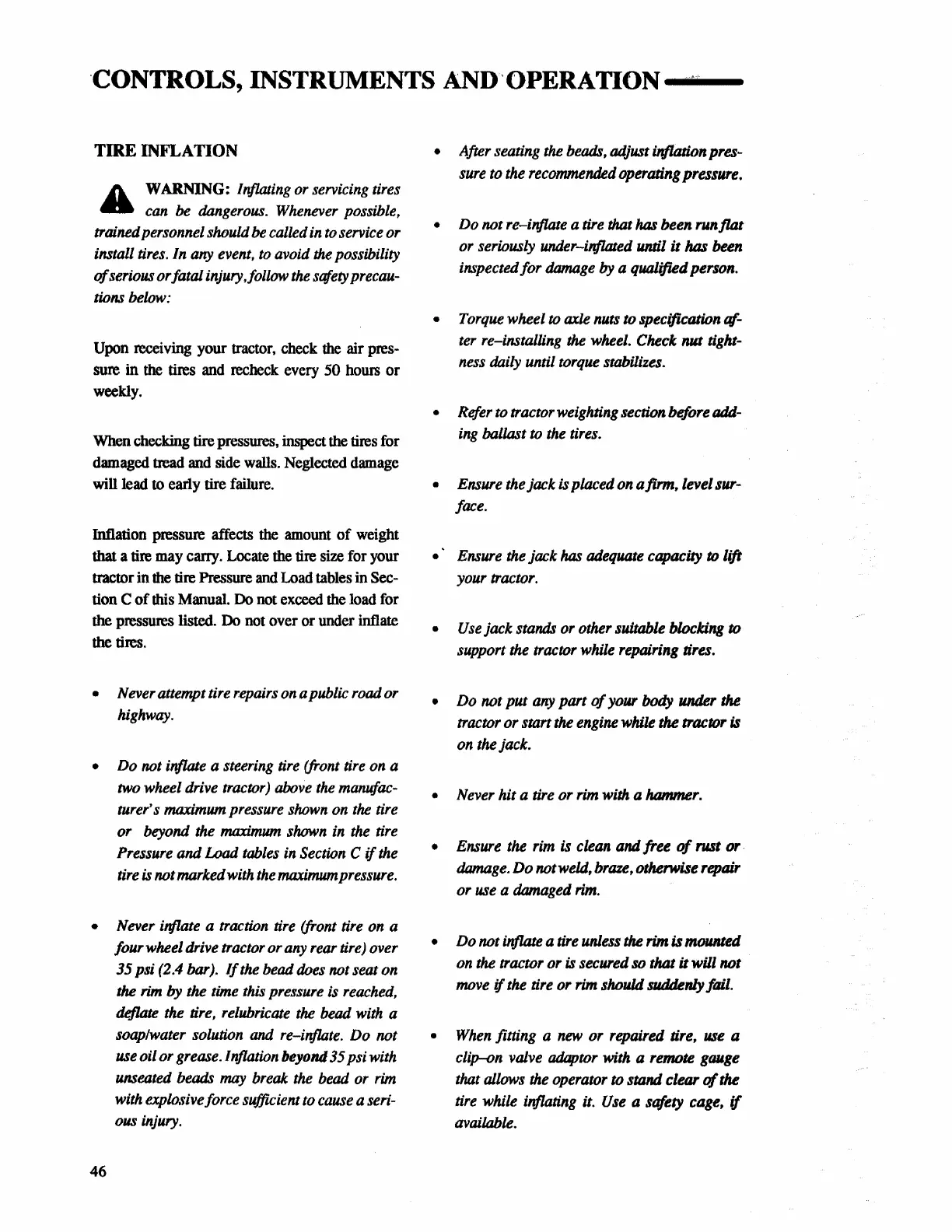 • Never inflate a traction tire (front tire on a