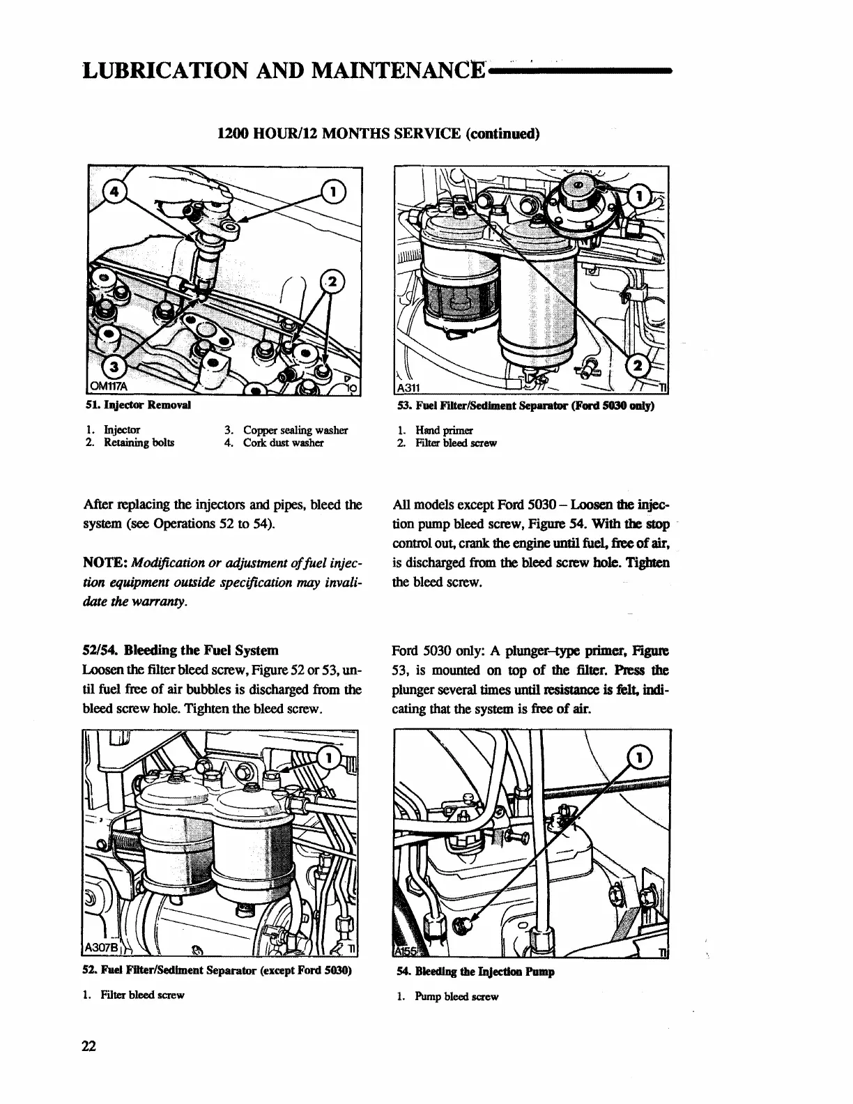 except Ford 5030 - Loosen the injec-