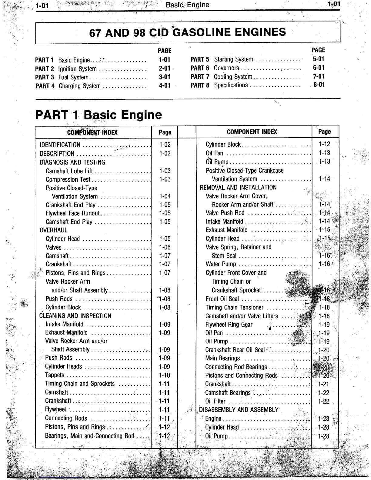 Ford 67 CID - Part 1 Basic Engine Service; Engine Diagnosis and Testing; Engine Overhaul Procedures