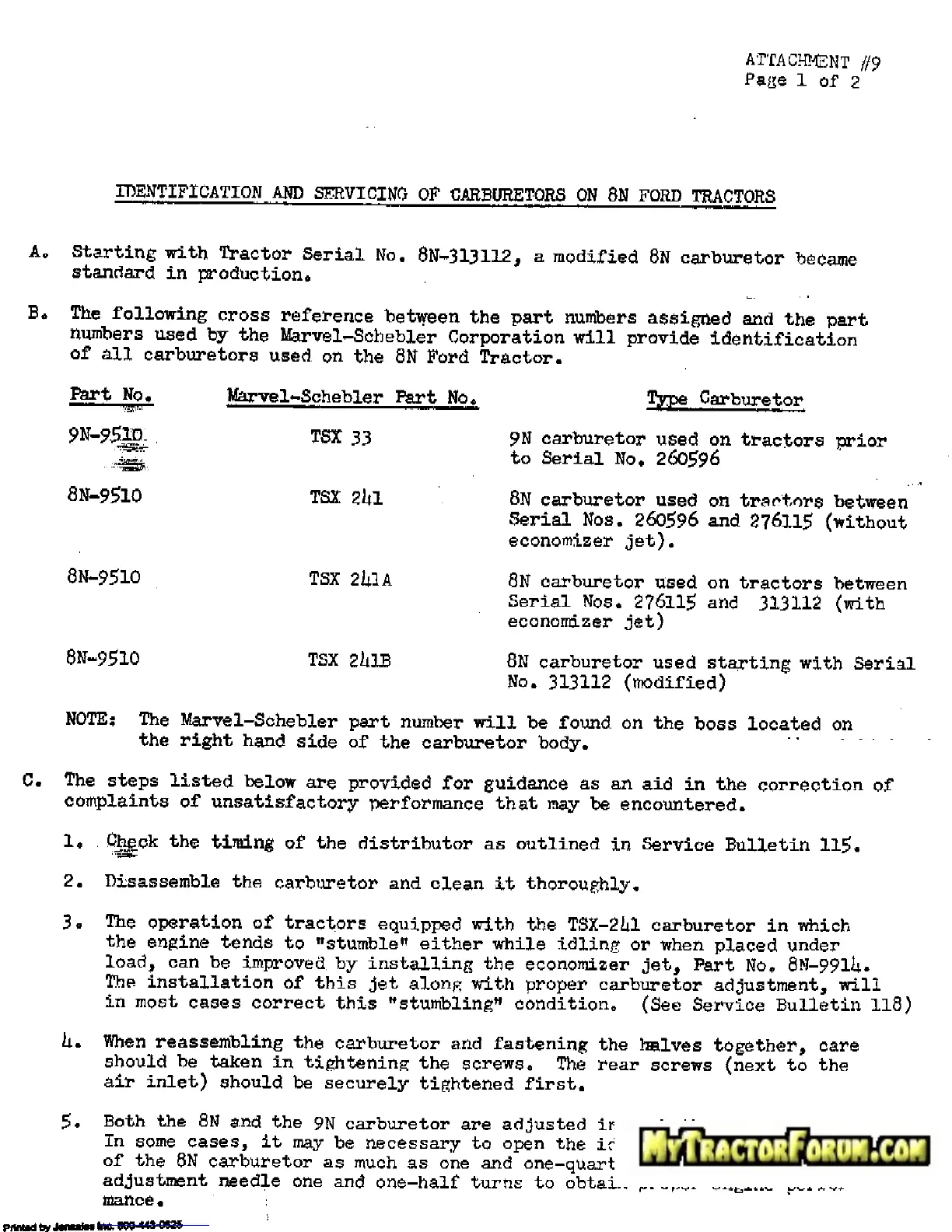Ford 9N - Identification and Servicing of Carburetors on 8 N Ford Tractors