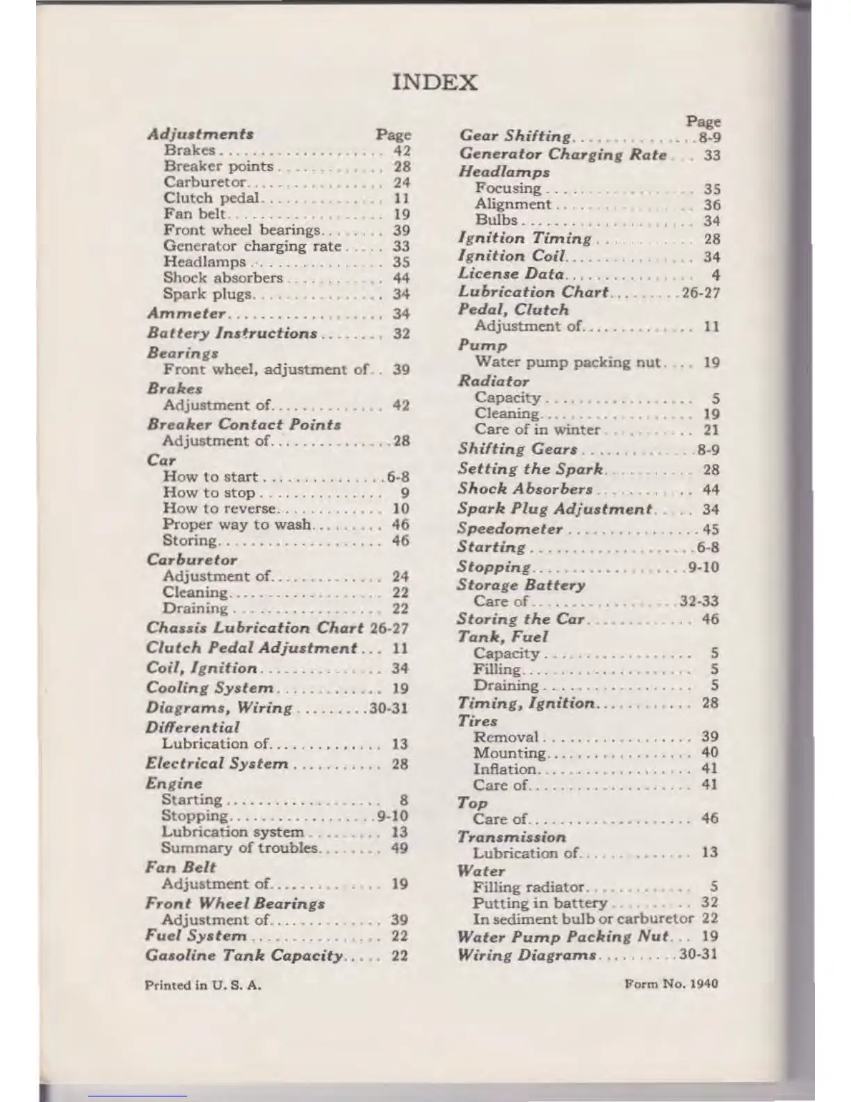 Lubrication of. . . . . . . . . . . . . 13