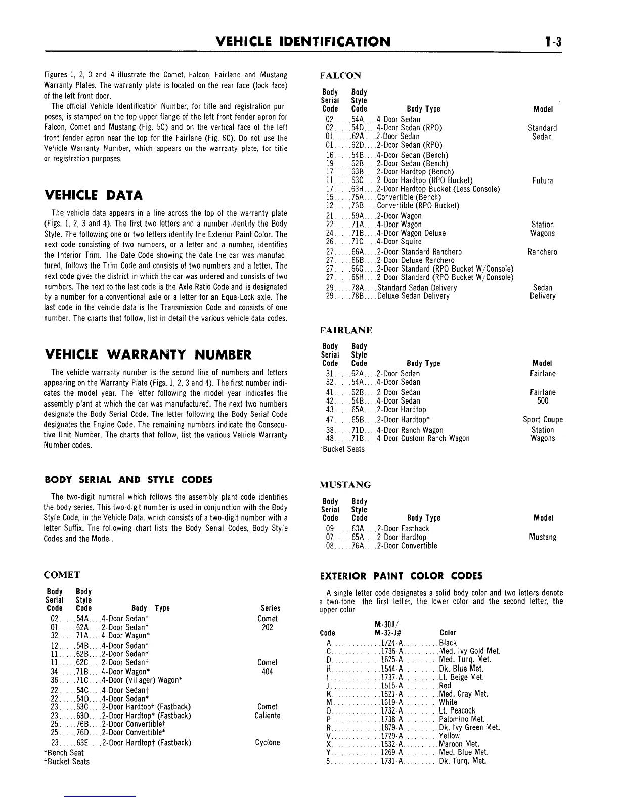illustrate the Comet, Falcon, Fairlane and Mustang