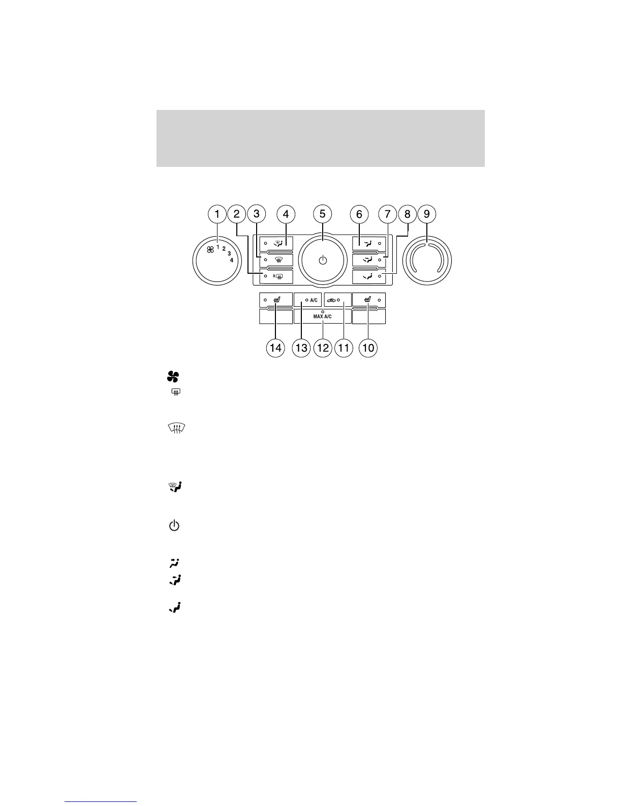 Power: Press to activate/deactivate the climate control system.