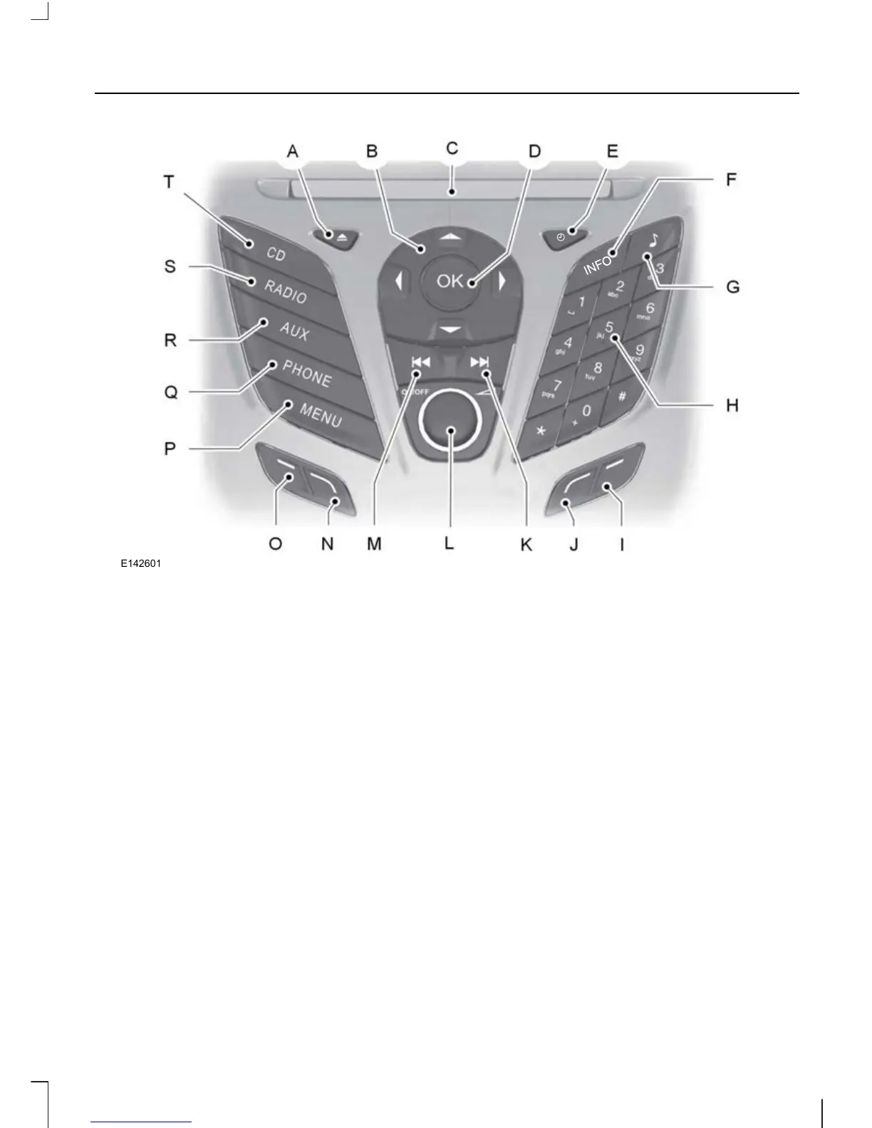 INFO: Press this button to access any available radio or CD information.F