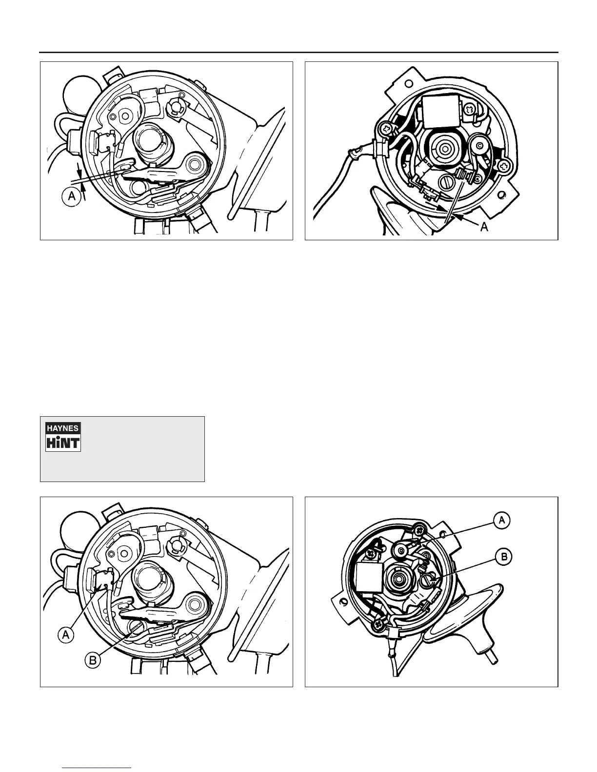 A LT lead connector B Contact breaker retaining screw