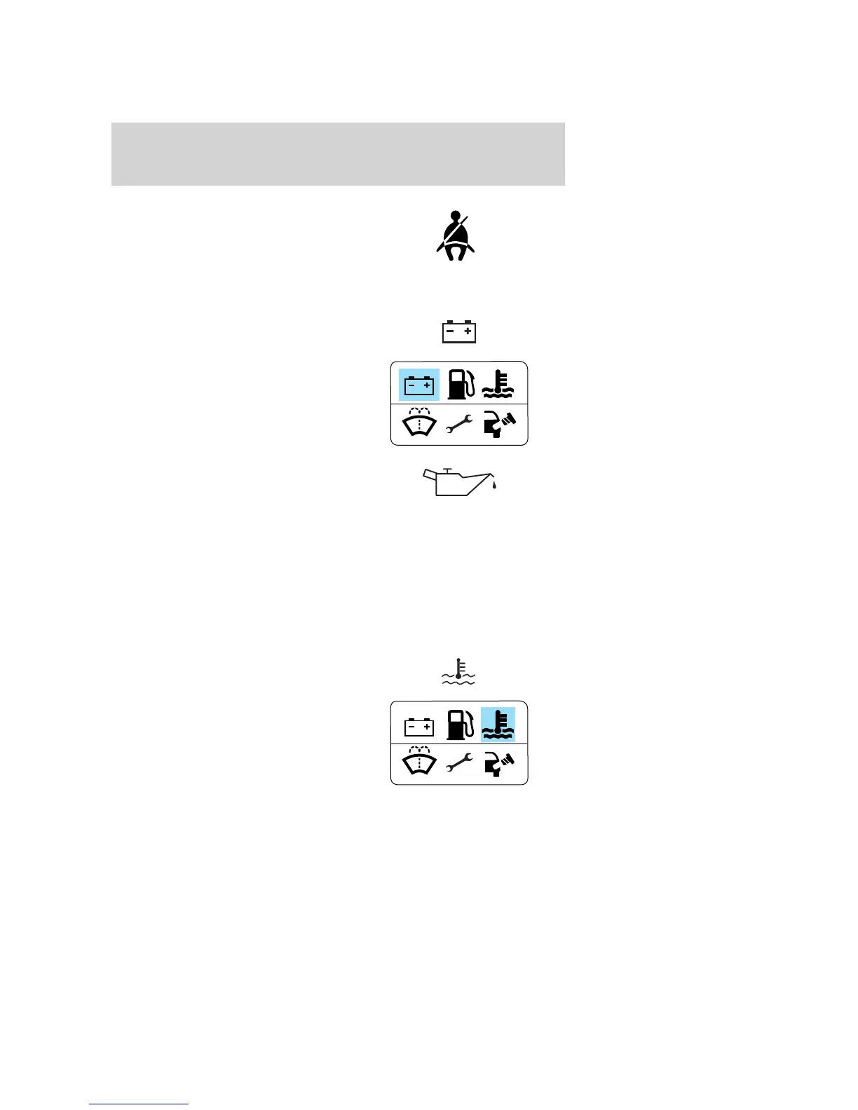 Charging system: Illuminates when the battery is not charging properly.