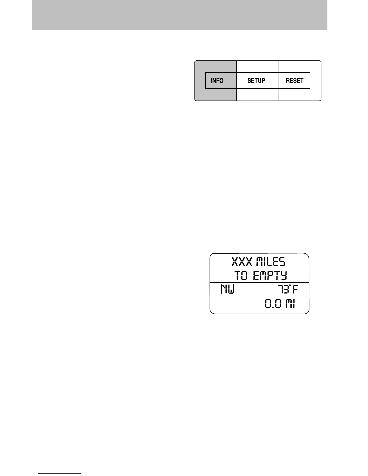 The DTE function will display LOW FUEL LEVEL and sound a tone for