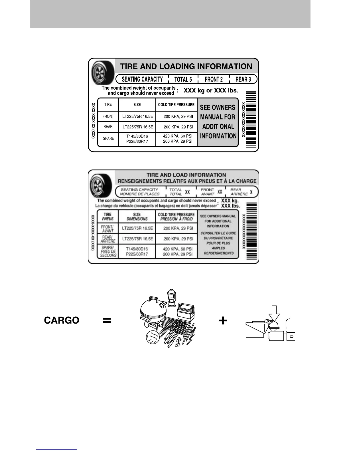 (front and rear) – including vehicle curb weight and all payload.