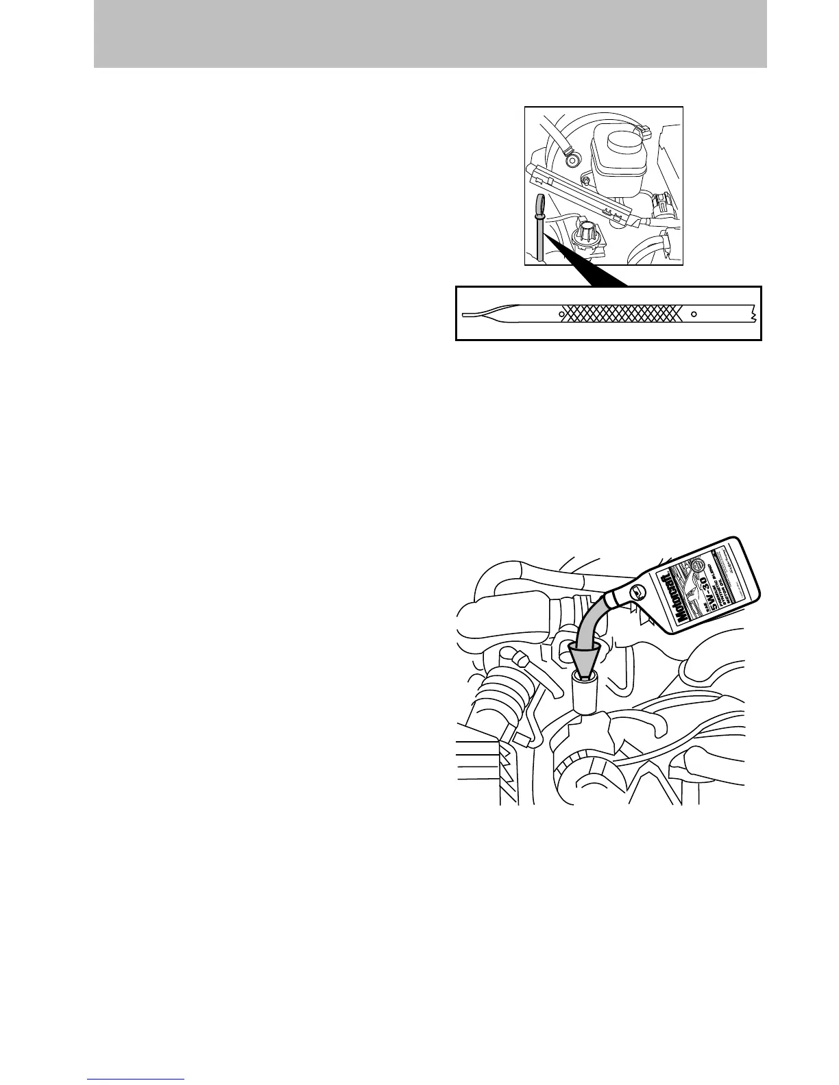 • If the oil level is below the lower hole, add enough oil to raise the