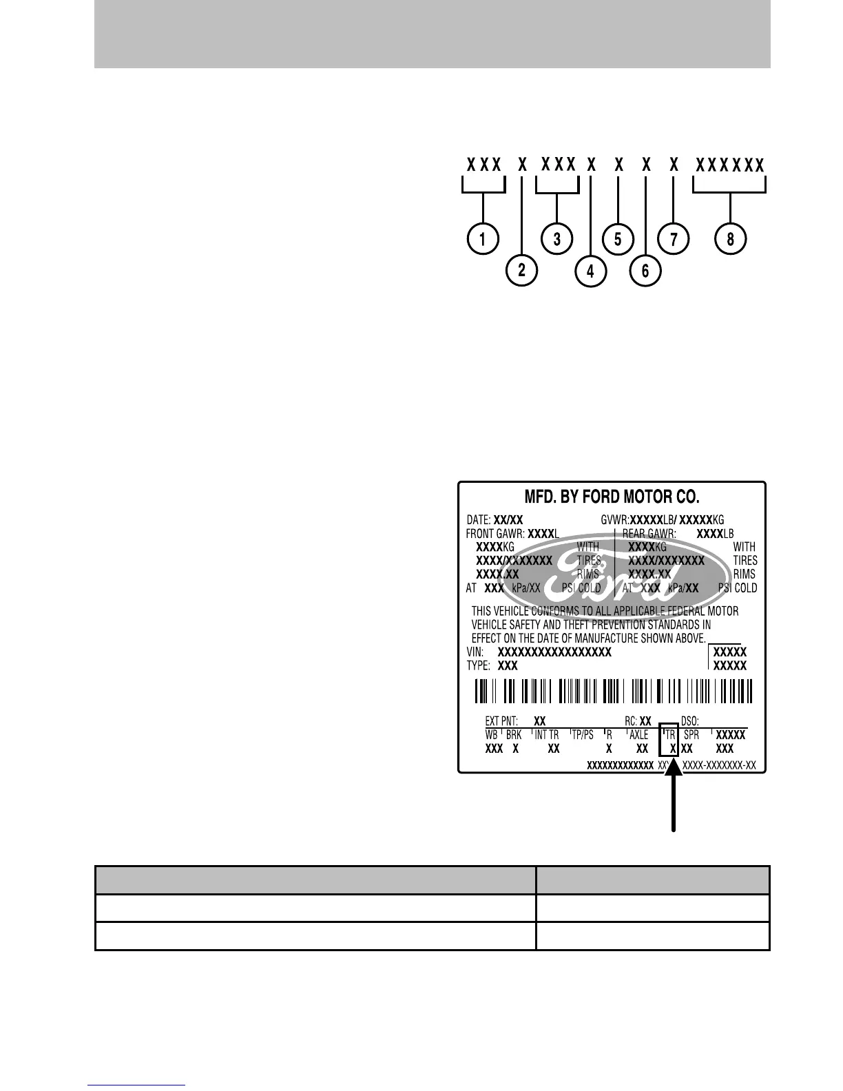 The Vehicle Identification Number (VIN) contains the following