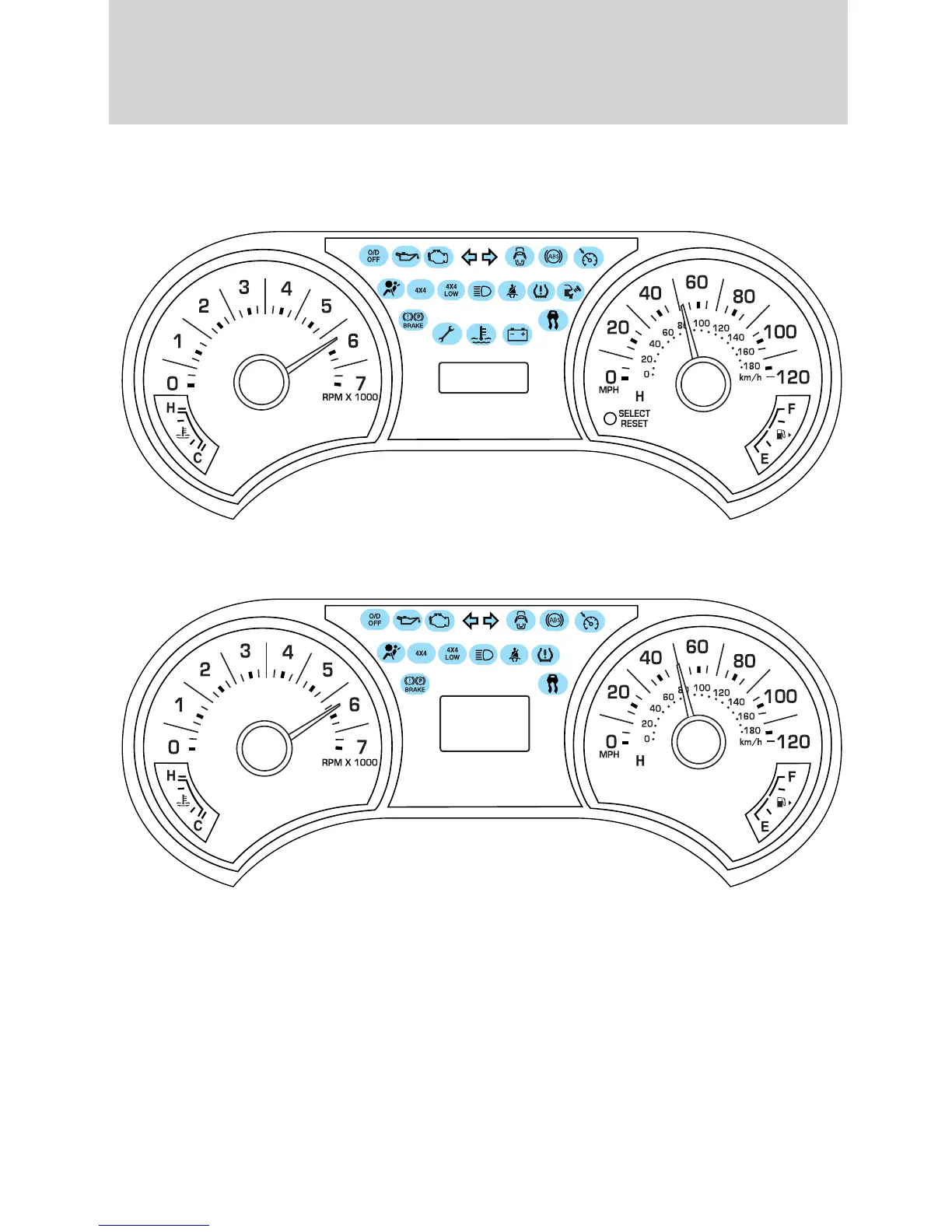 Note: Some warning lights will display in the message center as words