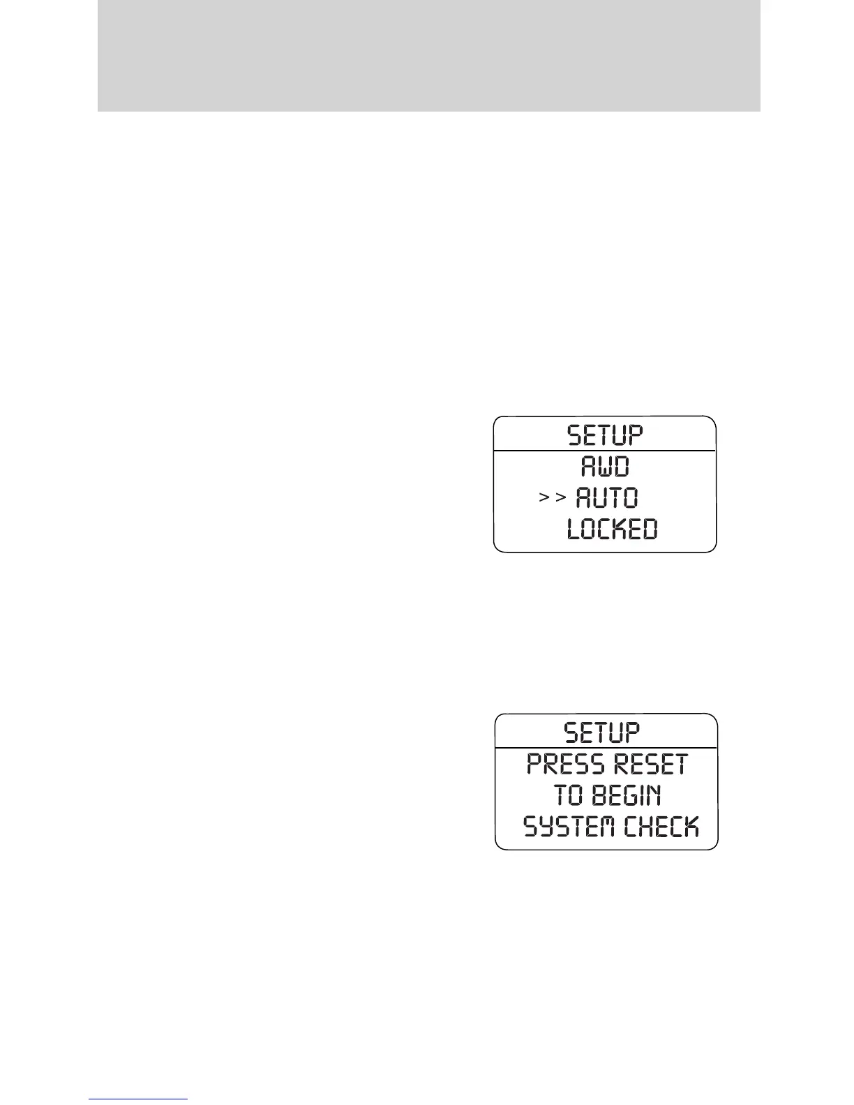 Select this function from the SETUP MENU to display the AWD locked