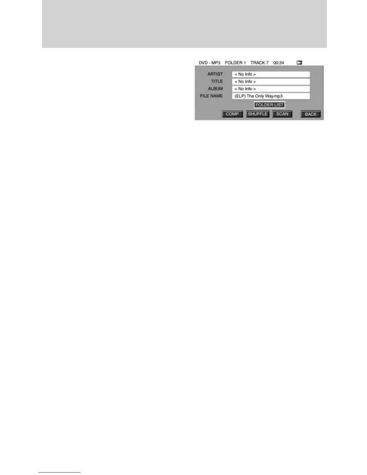 SCAN: Press for a brief sampling of all tracks on the current MP3 folder.
