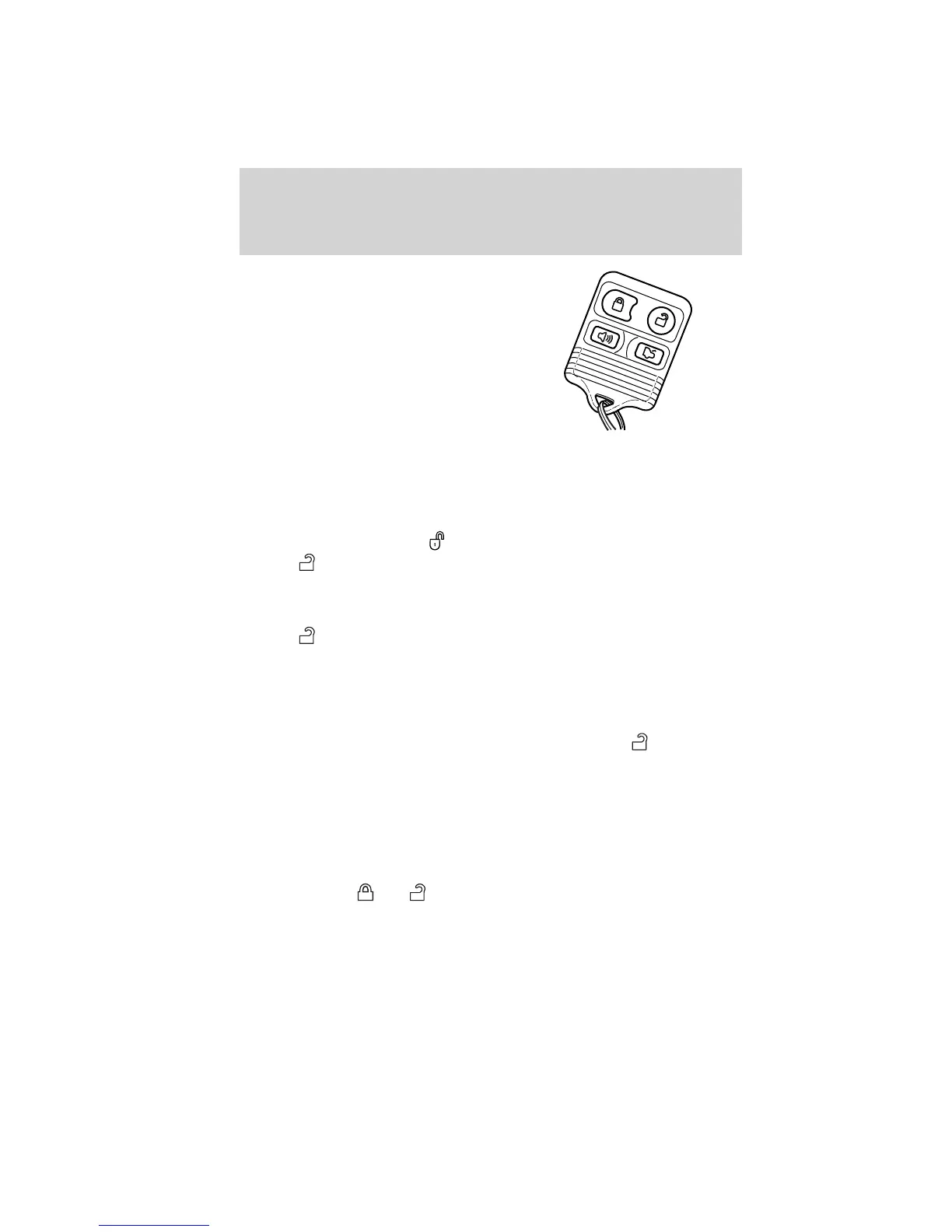1. Press and release to unlock the driver’s door. Note: The interior
