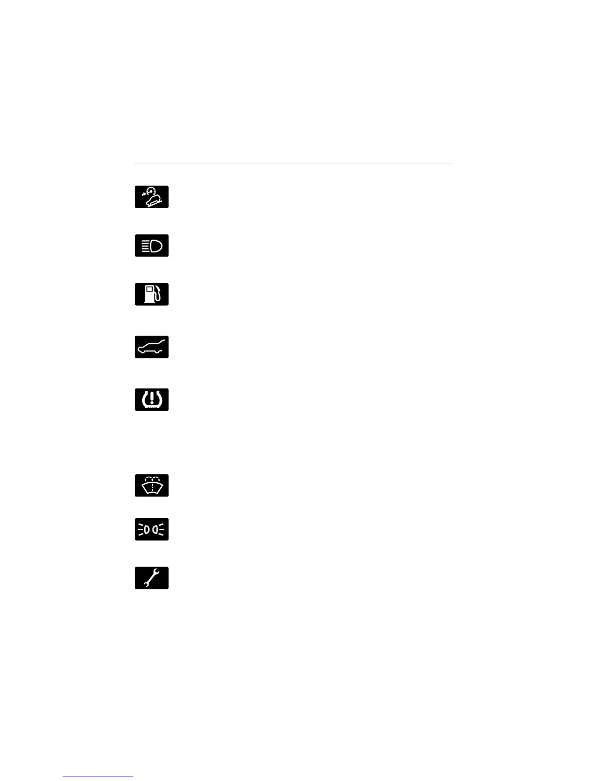 Illuminates when the windshield washer fluid is low.