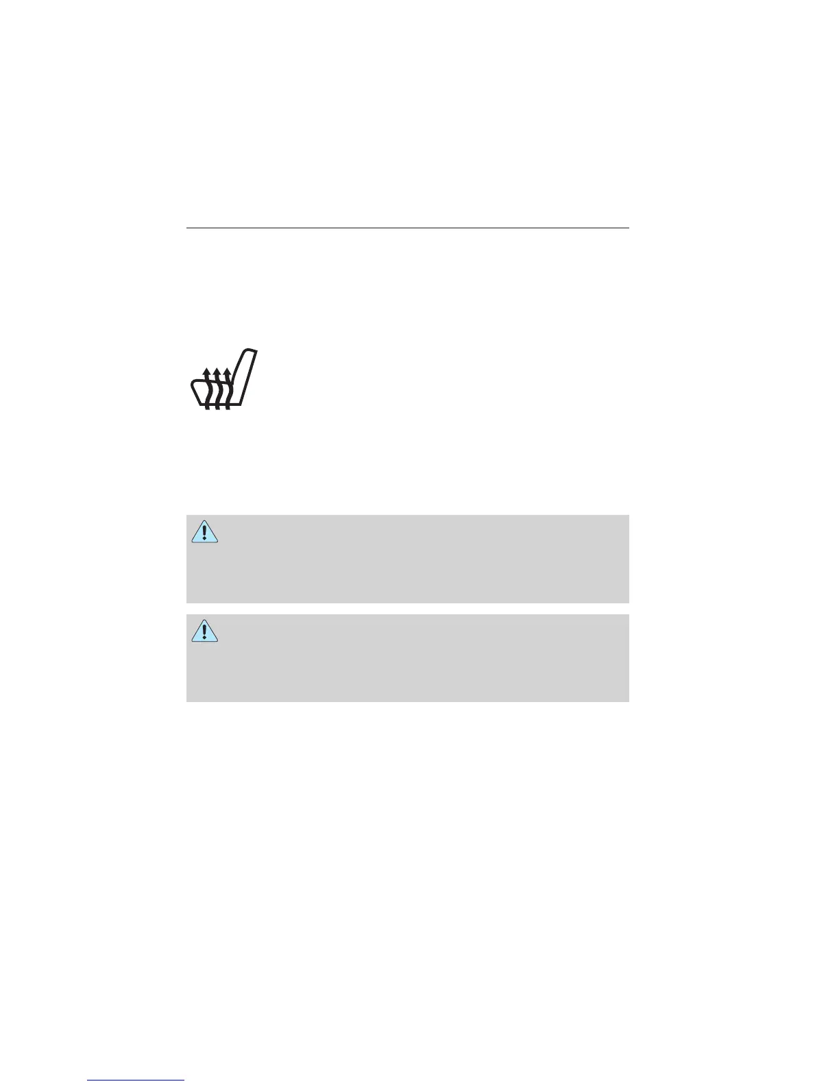 • Operate the seat heater if water or any other liquid is spilled on the