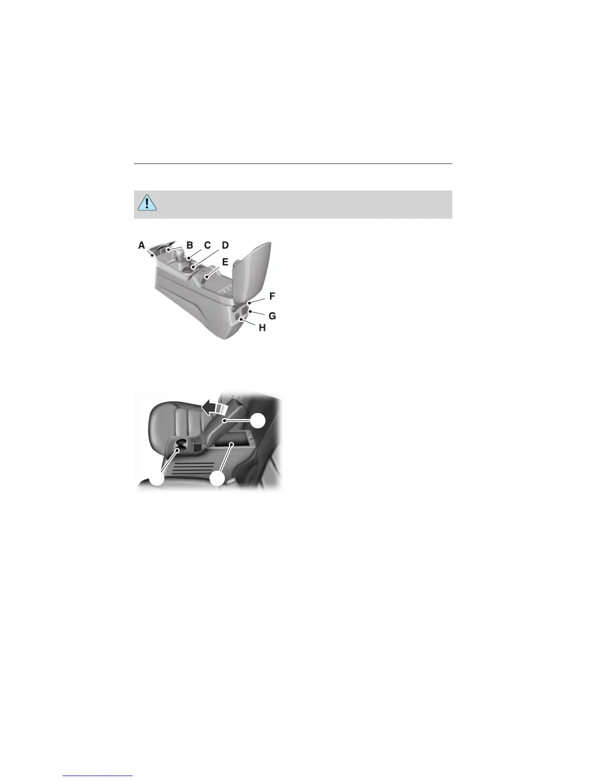 WARNING: Use only soft cups in the cupholder. Hard objects