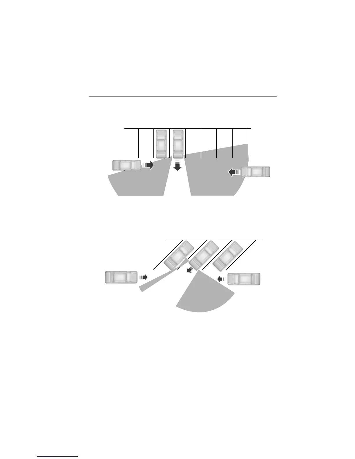 Zone coverage also decreases when parking at shallow angles. Here, the left