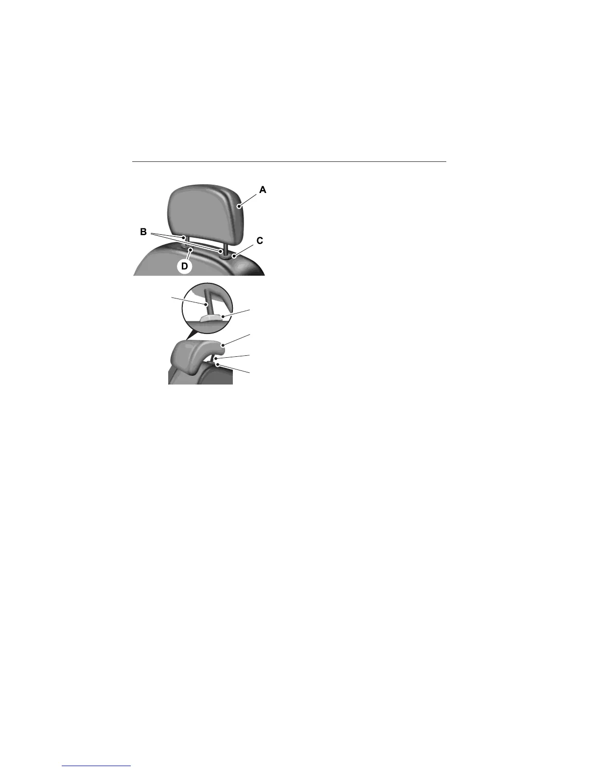 • Raise: Pull up on the head restraint (A).