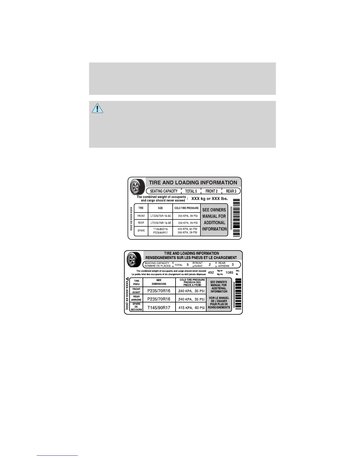WARNING: The appropriate loading capacity of your vehicle can