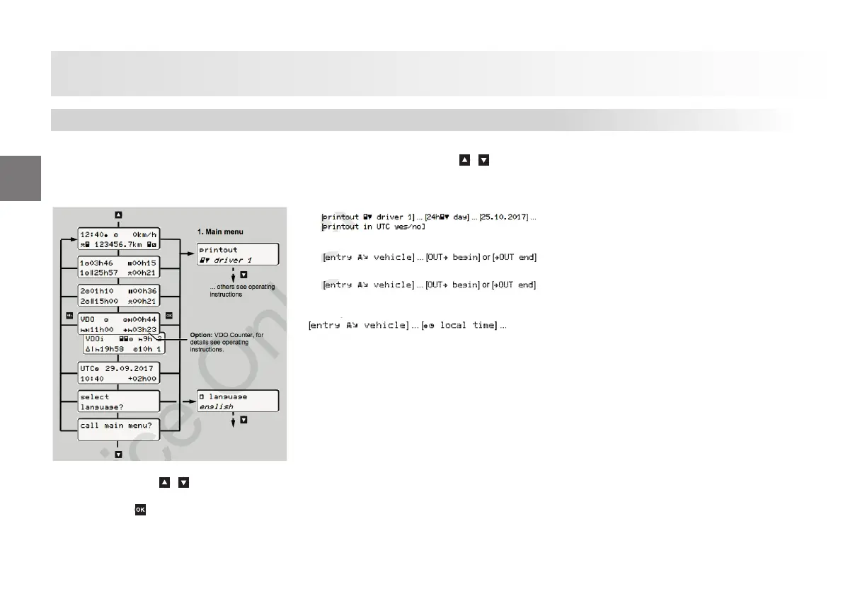 ► Use button to call up the main