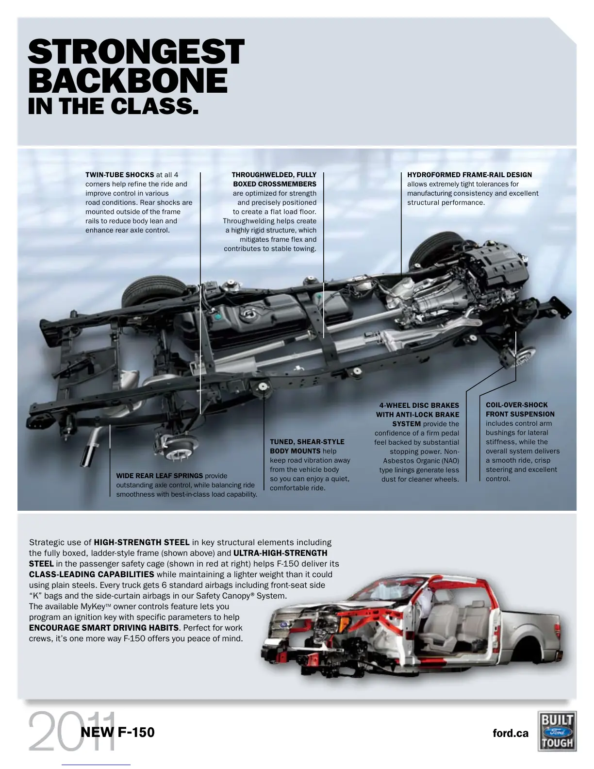 STEEL in the passenger safety cage (shown in red at right) helps F-150 deliver its