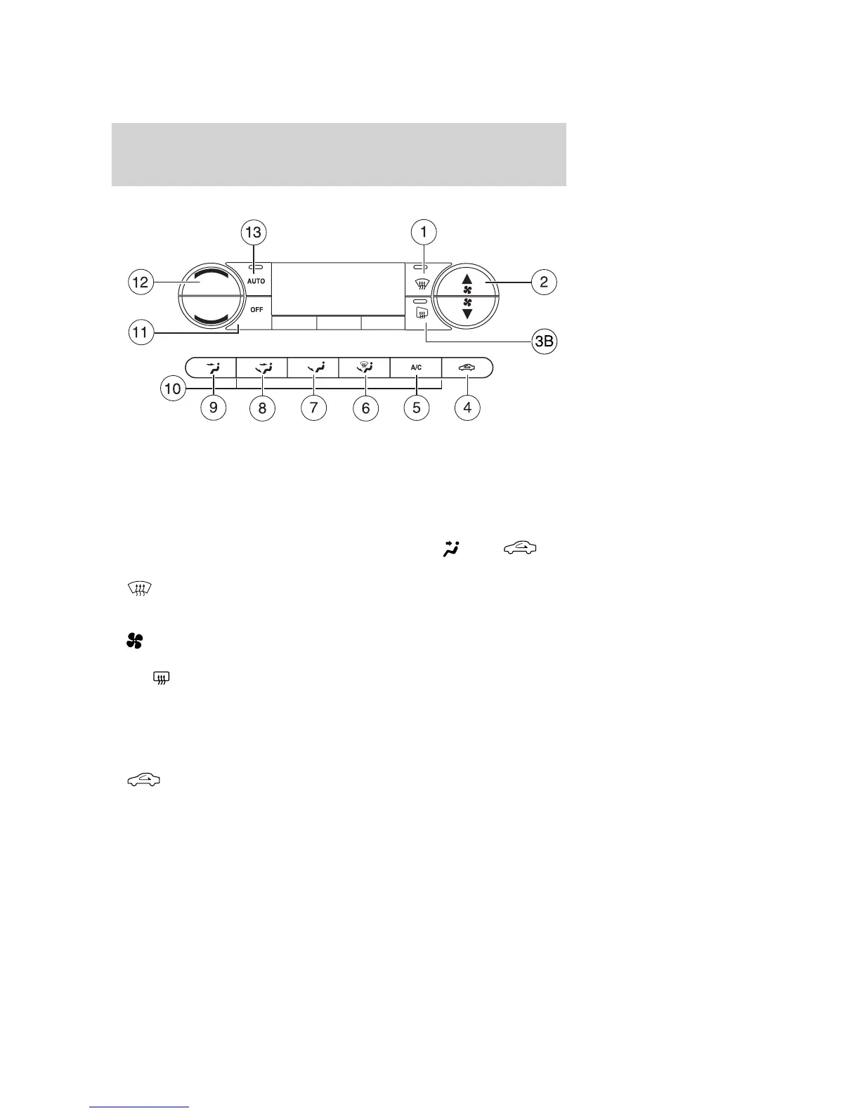 Defrost: Distributes outside air through the windshield defroster