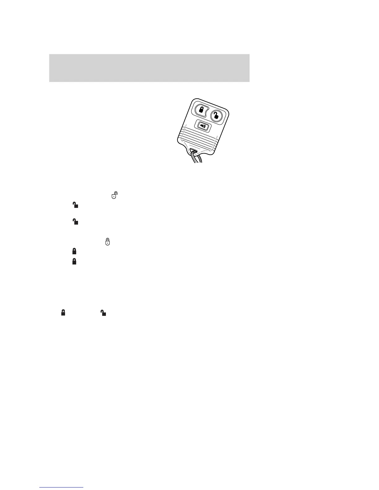 1. Press and release to unlock the driver’s door. Note: The interior