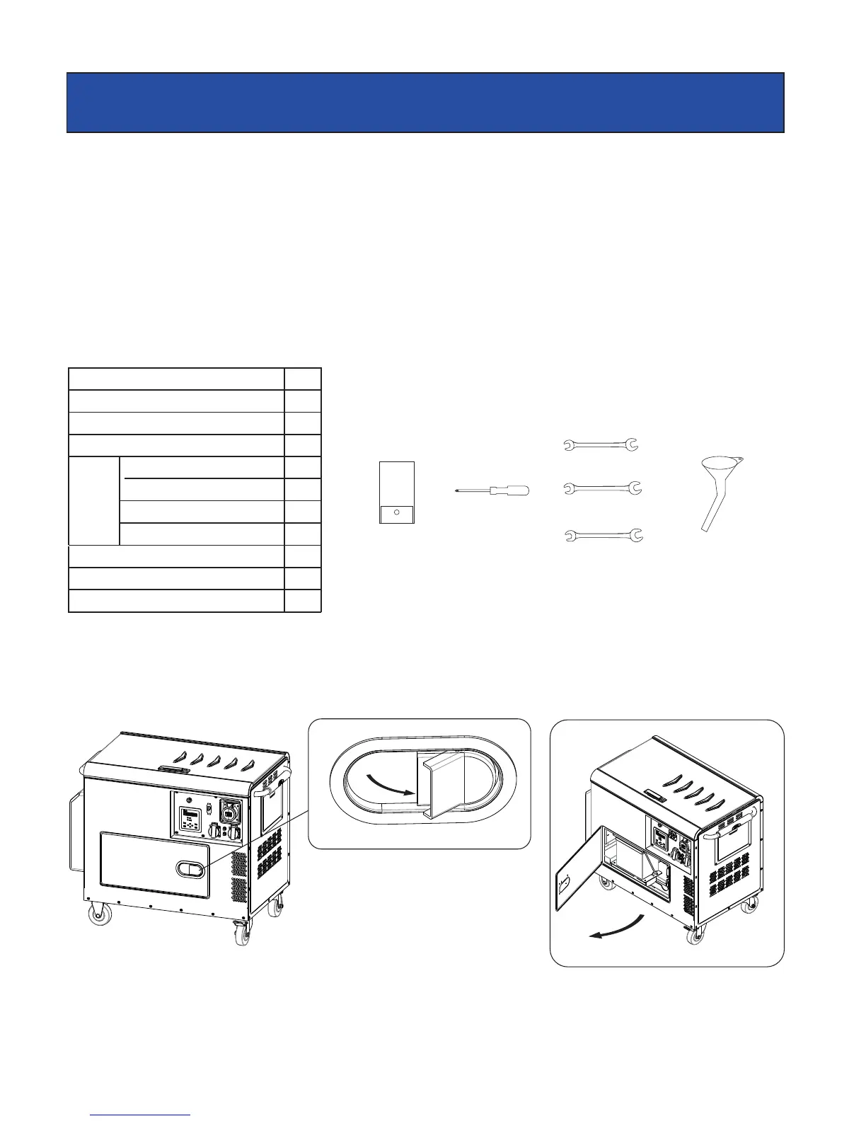 2. Remove all items from box except the generator. Make sure all items listed on the packing list are included and not