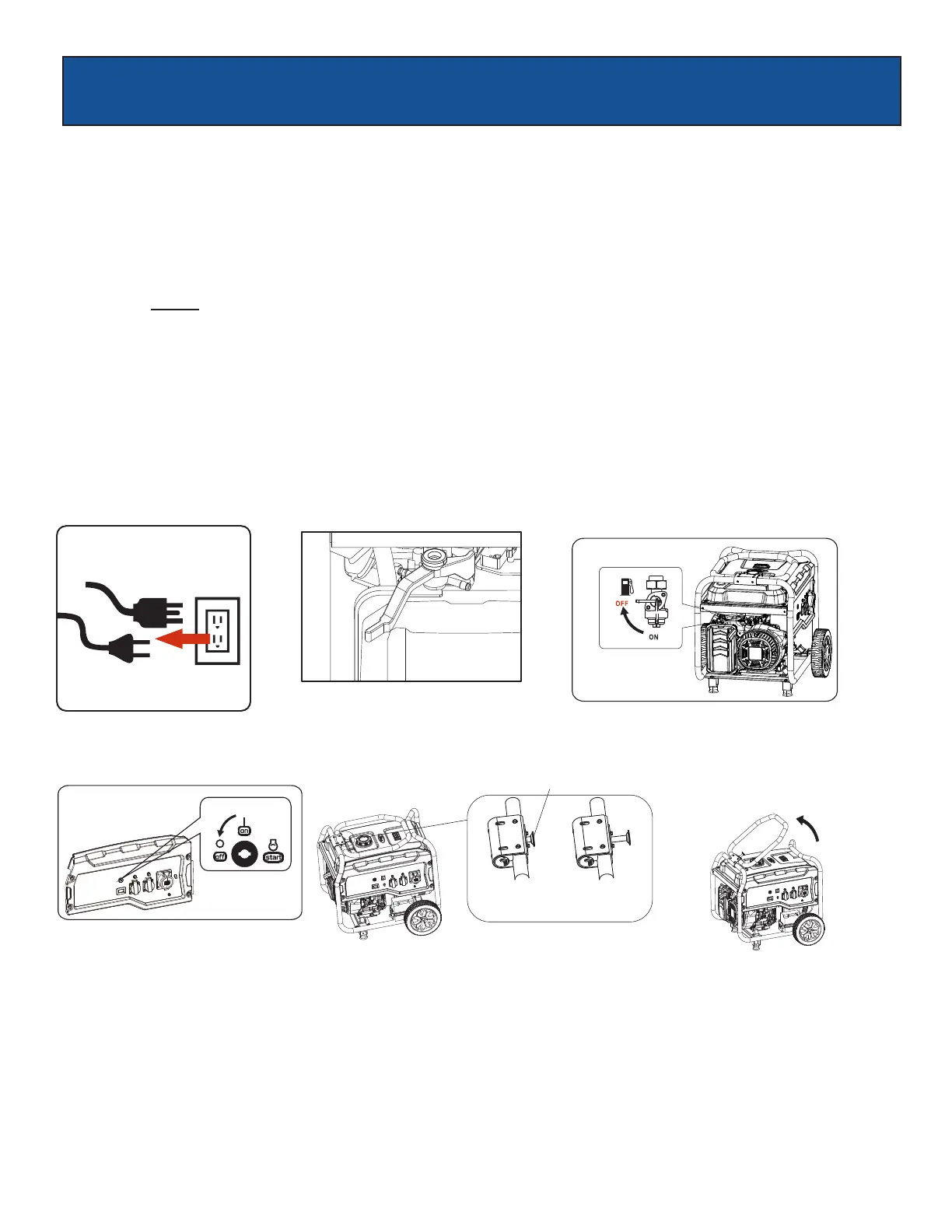 • All loads MUST be disconnected from the generator. Never start or stop the engine with electrical devices plugged in