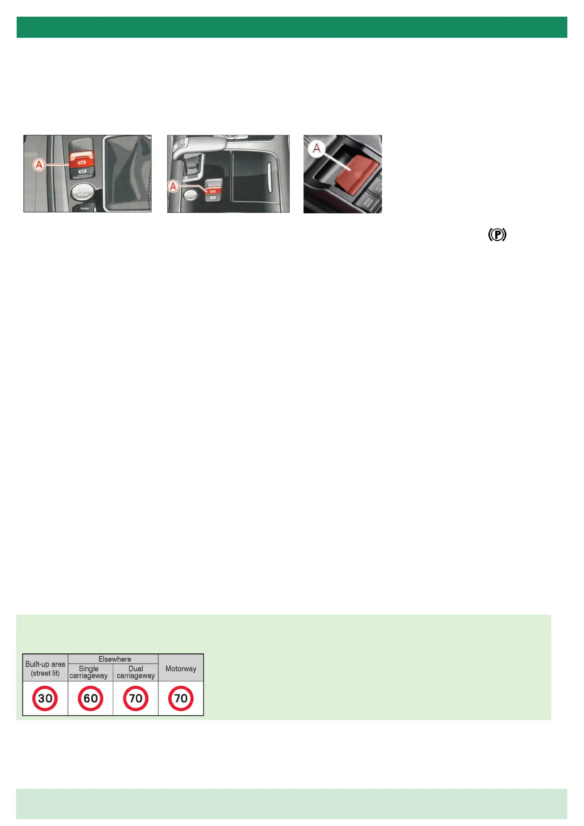 The diagrams above indicate example locations of the electronic parking brake (A) which is labelled with the universal icon symbol: