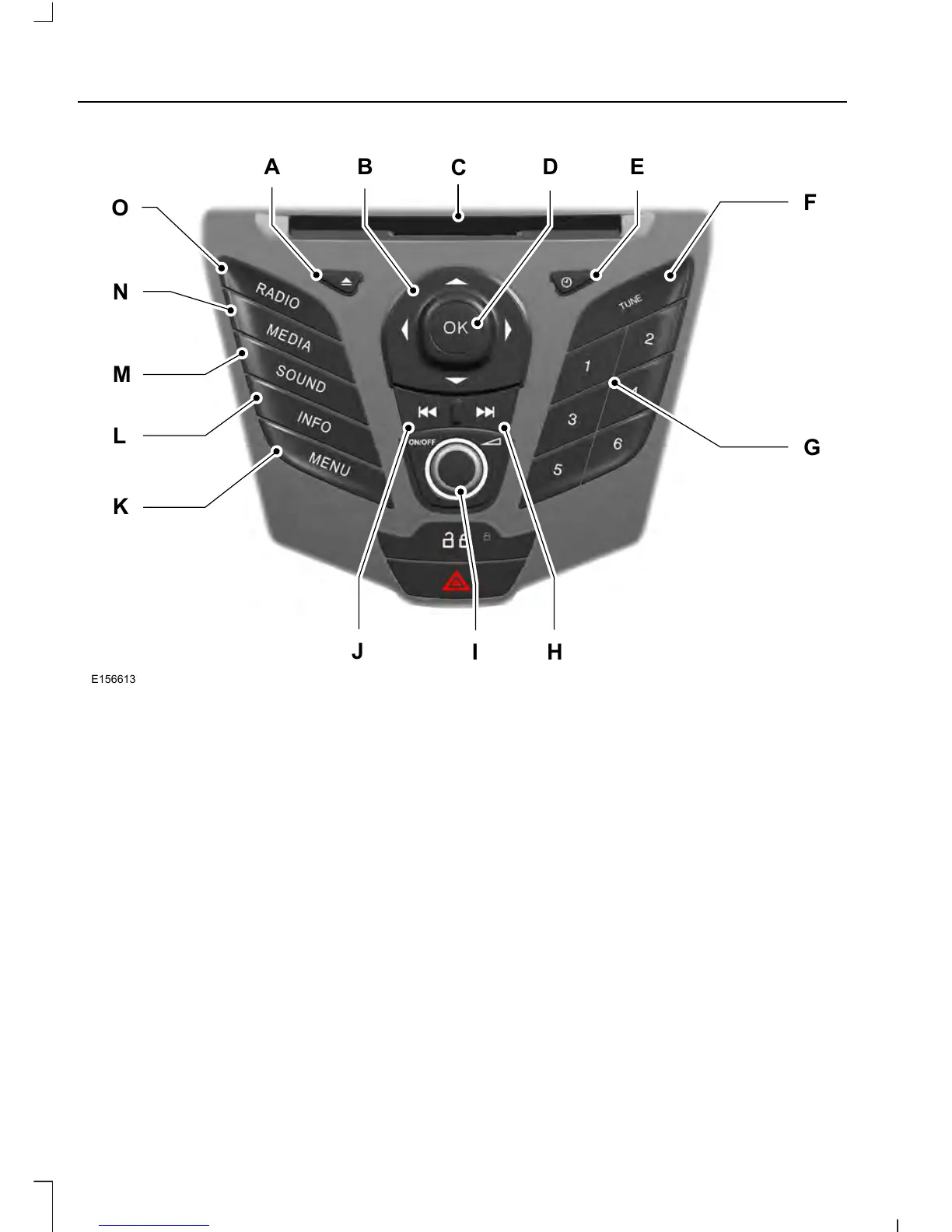 On, Off and Volume: Press the button to switch the audio system on or off.