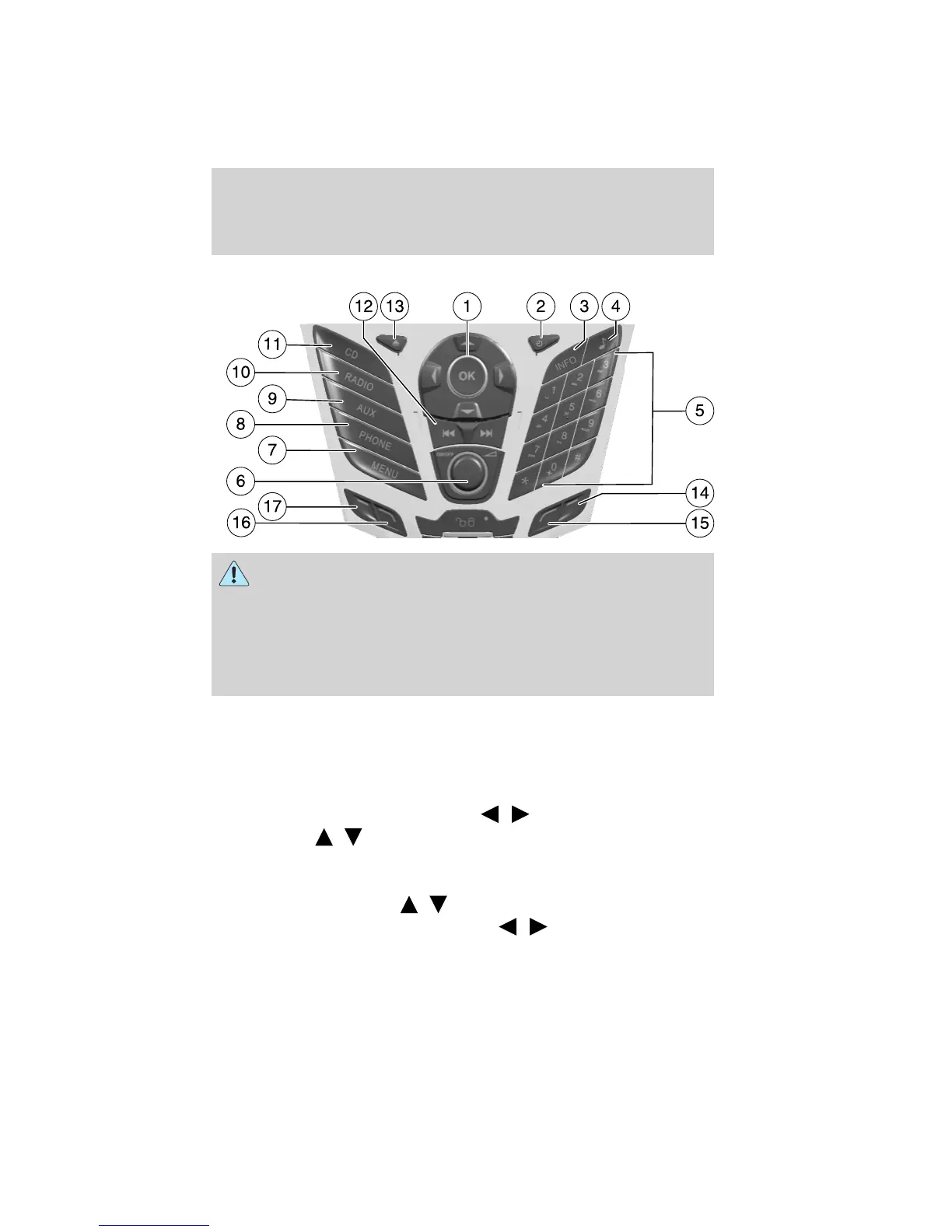3. INFO: Press to access any available radio or CD information.