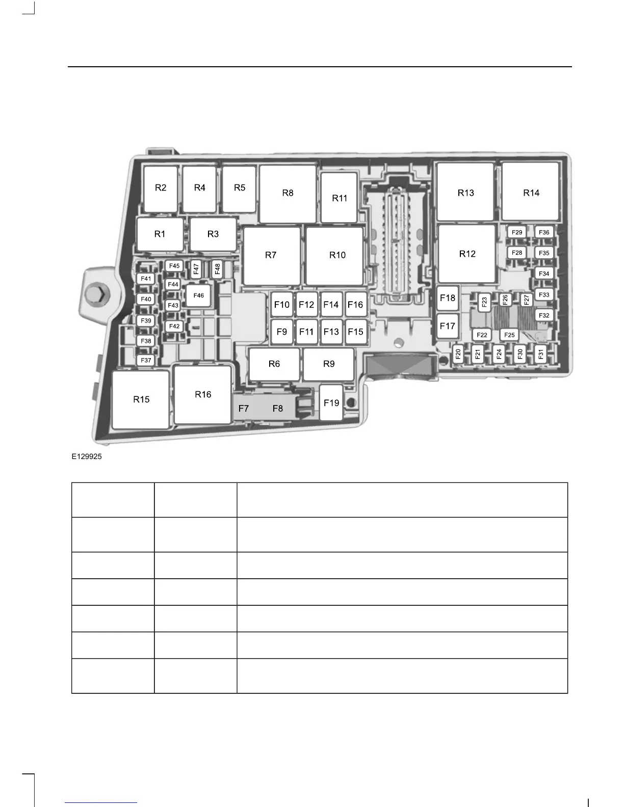 Ford Focus 2016 - Fuses; Fuse Specification Chart; Engine Compartment Fuse Box