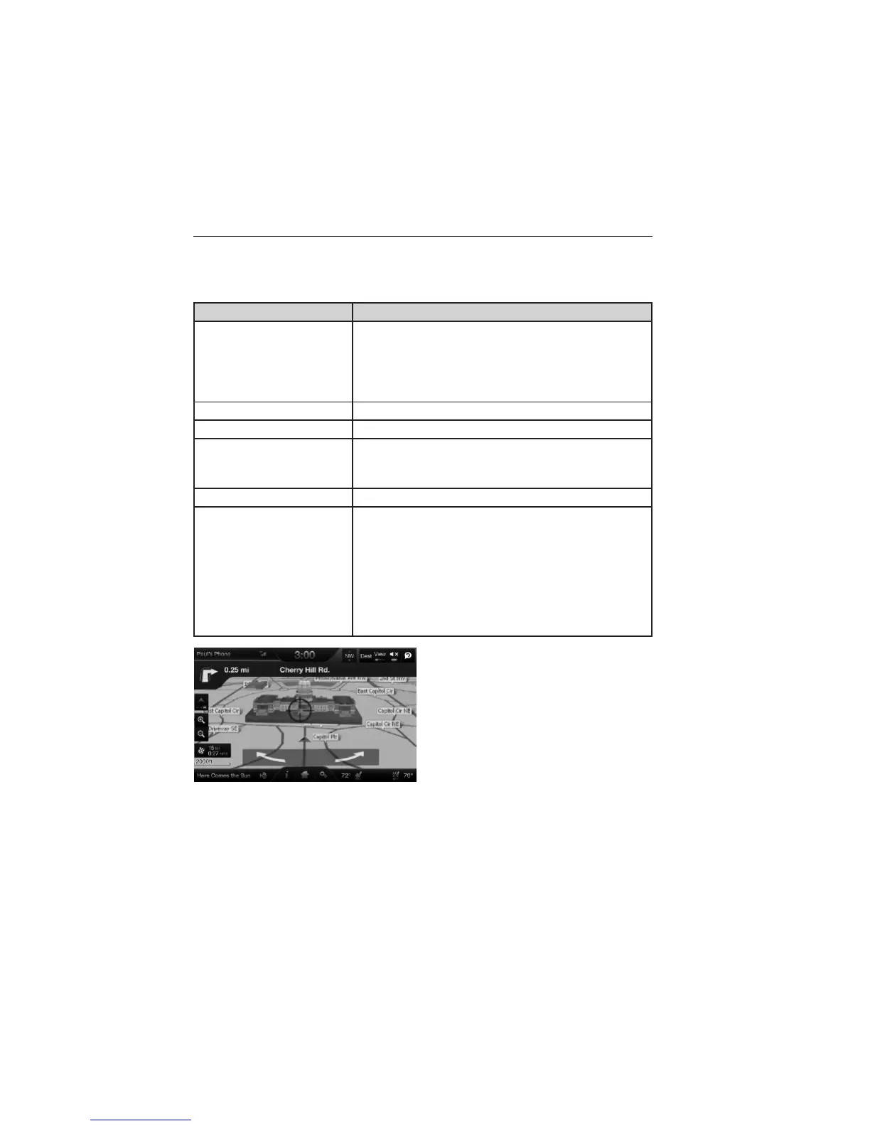 When in map mode, touch anywhere on the map display to access the