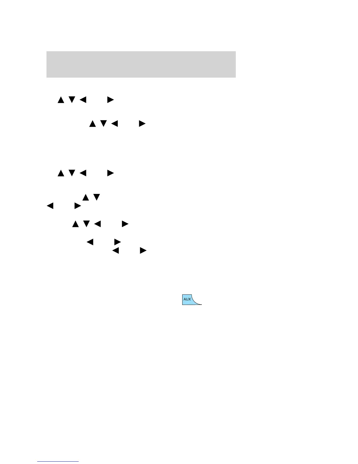 If equipped with Satellite Radio, press AUX to cycle through SAT1, SAT2