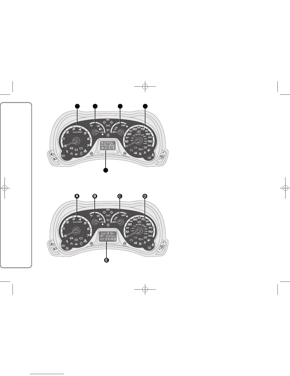 B Fuel gauge with reserve warning