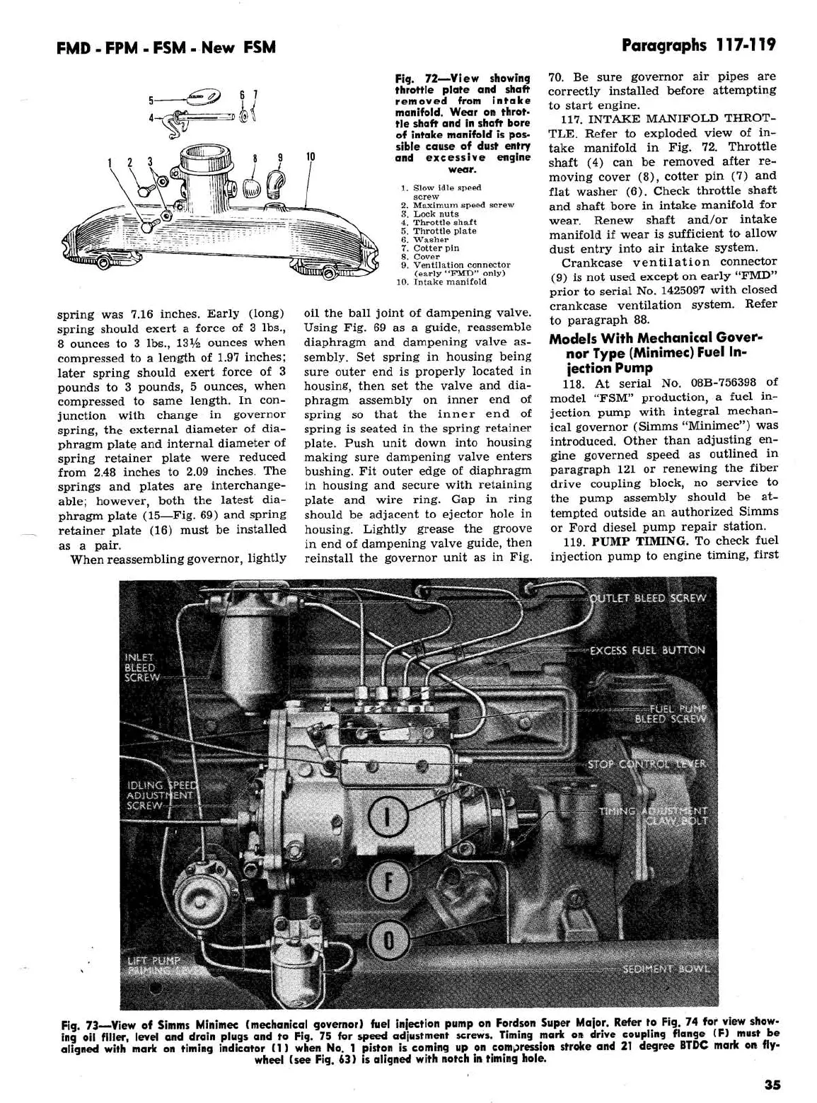 Ford new performance super dexta - Models with Mechanical Governor Type (Minimec) Fuel Injection Pump; FMD, FPM, FSM, New FSM: View Showing Throttle Plate and Shaft Removed from Intake Manifold; View of Simms Minimec Fuel Injection Pump on Fordson Super Major