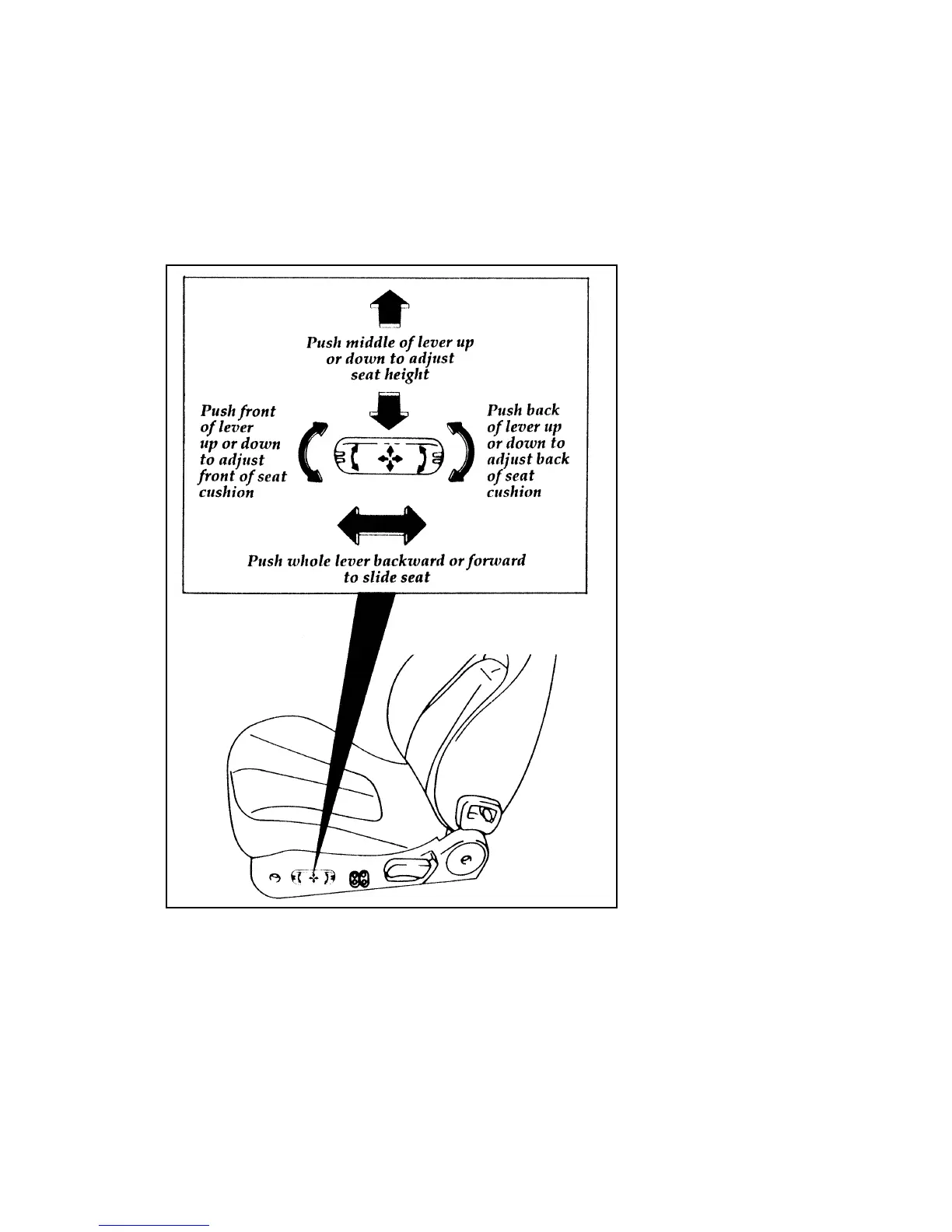 The six-way power seat control lever is located