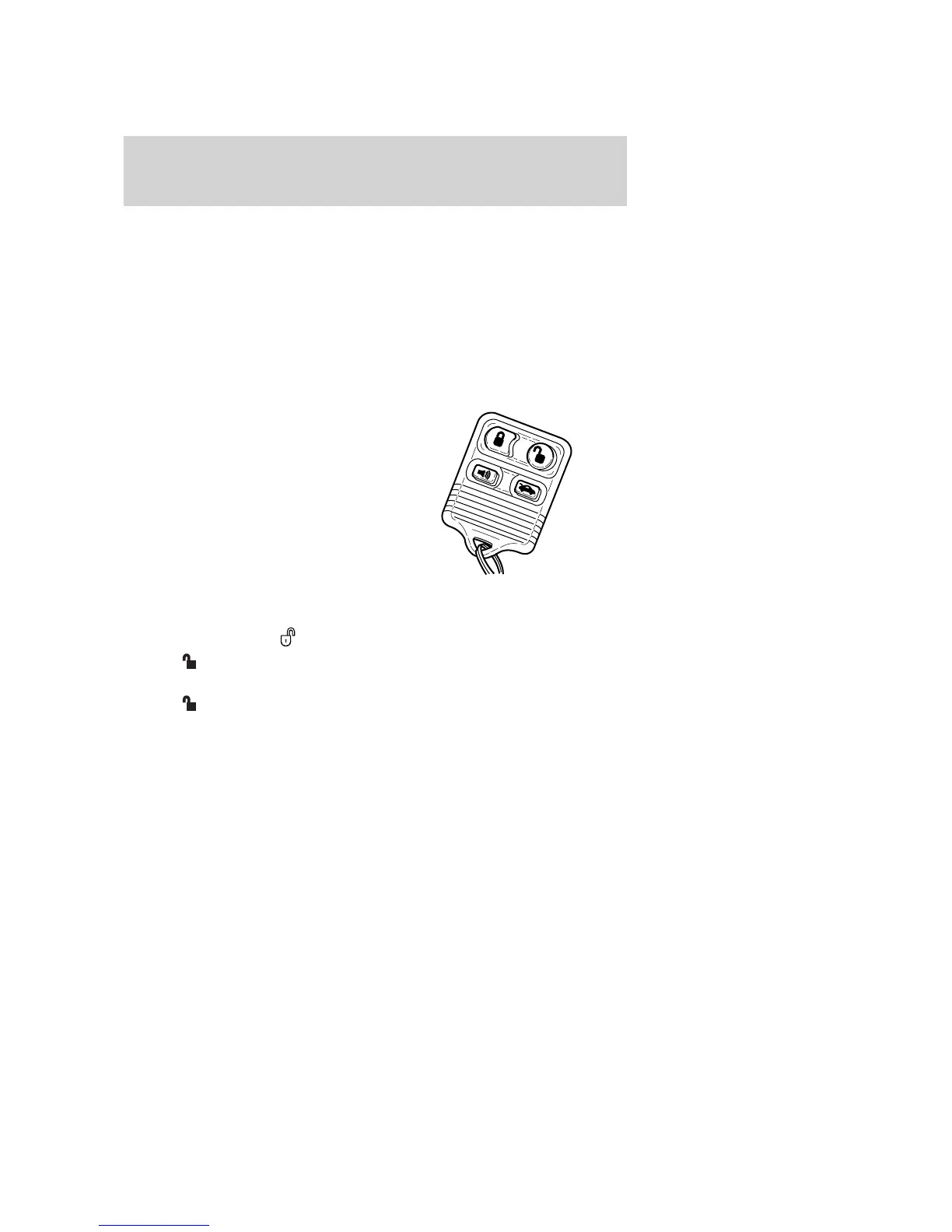 1. Press and release to unlock the driver’s door. Note: The interior