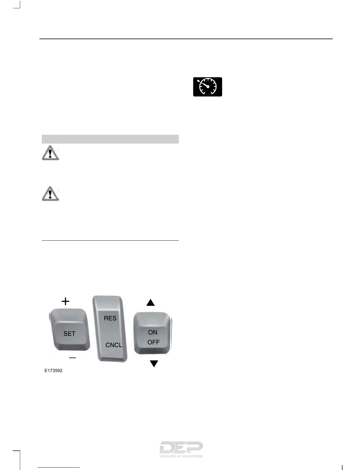 Note: Cruise control will disengage if the