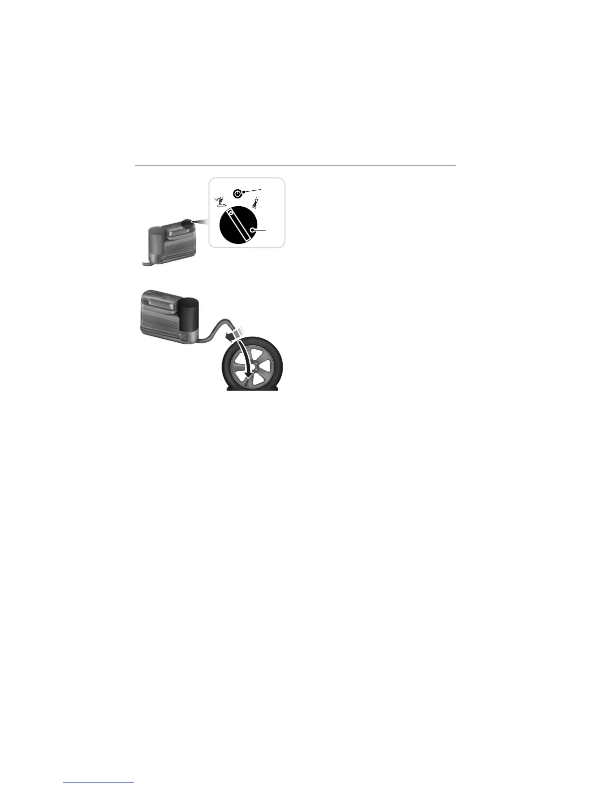 pressing the on and off button, then disconnect the kit from the tire