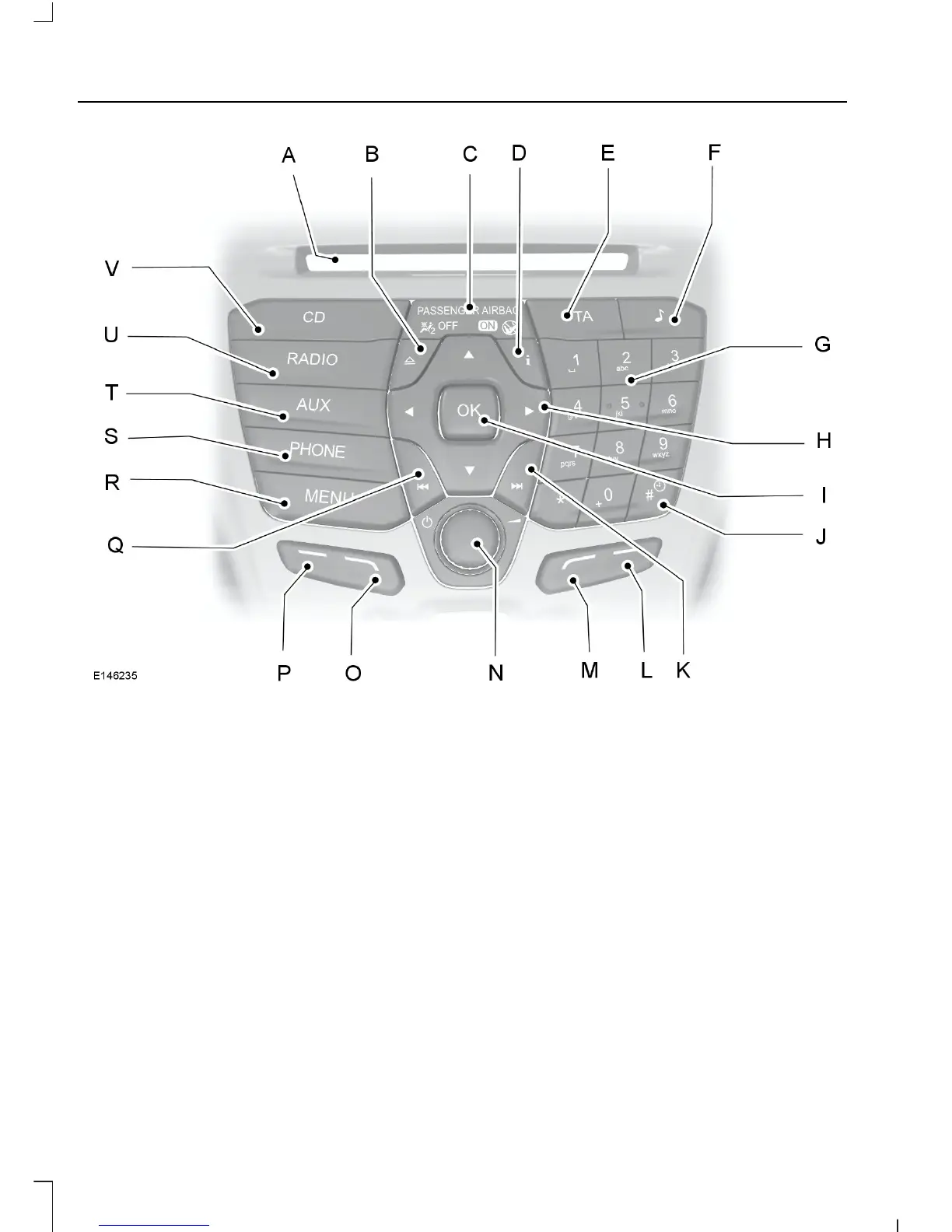 INFO: Press the button to access radio, CD, USB and IPod information.D